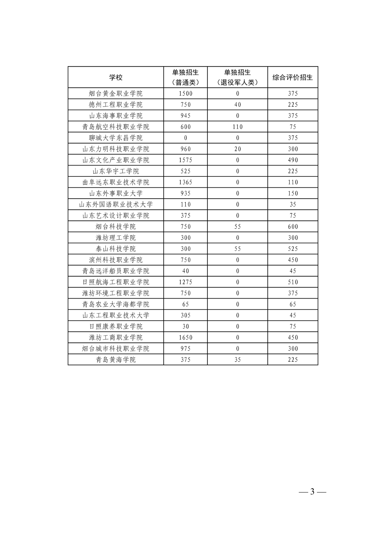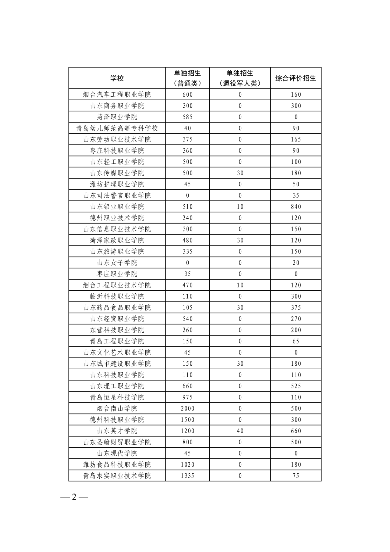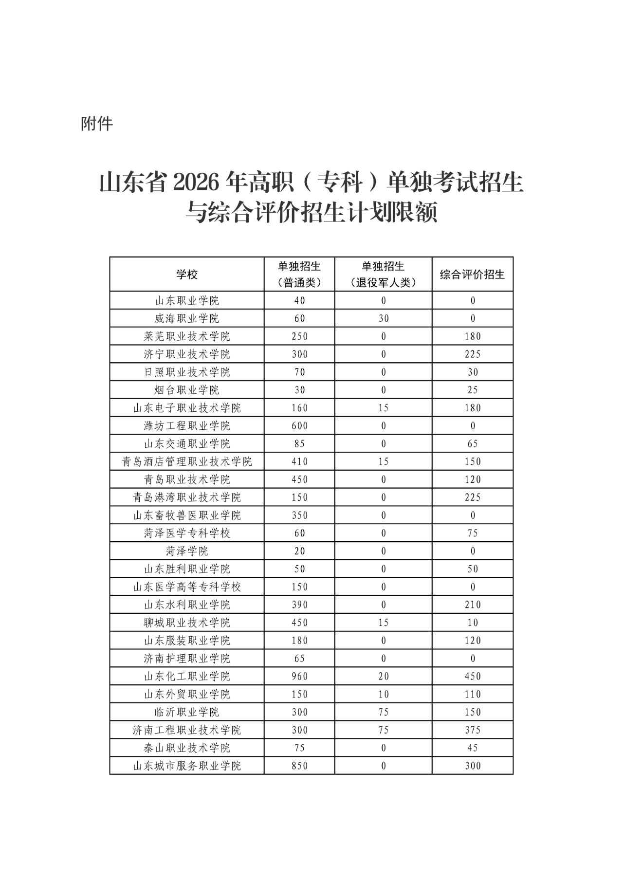 附件:山东省2026年高职(专科)单独考试招生与综合评价招生计划限额.pdf