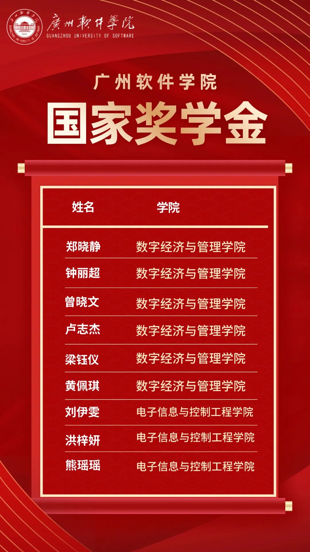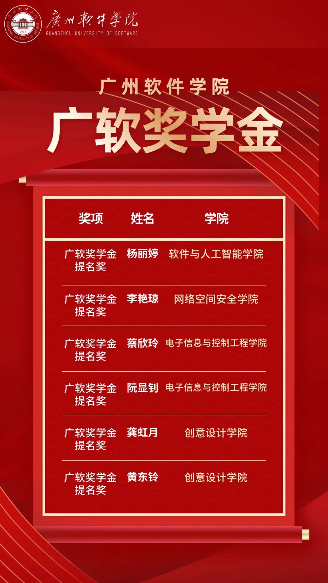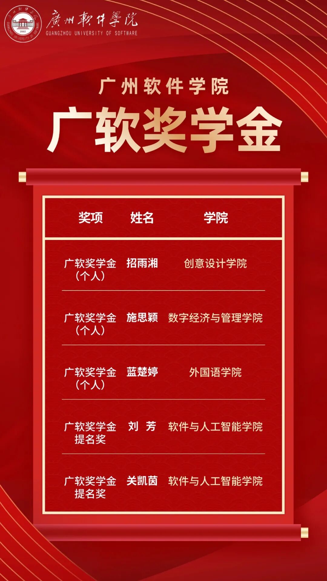 广软奖学金(个人)获奖名单