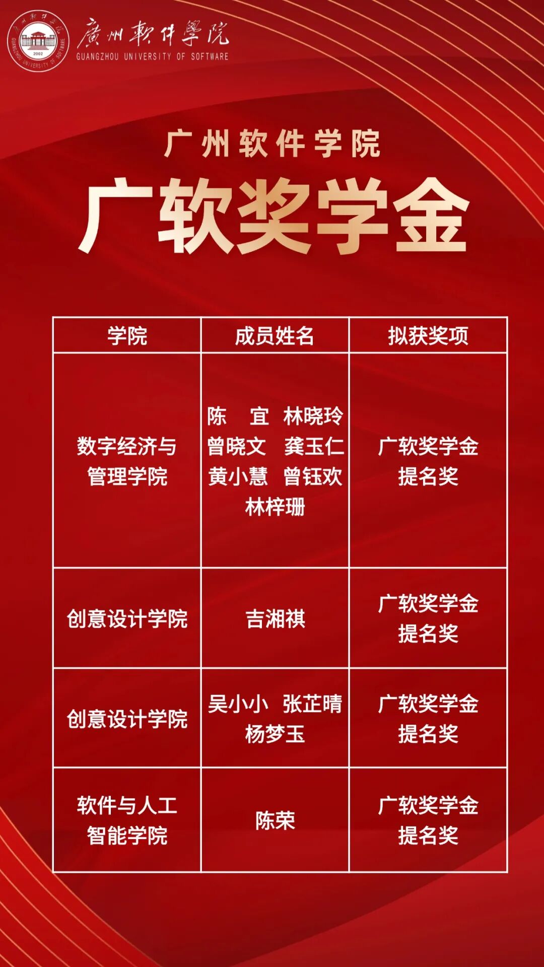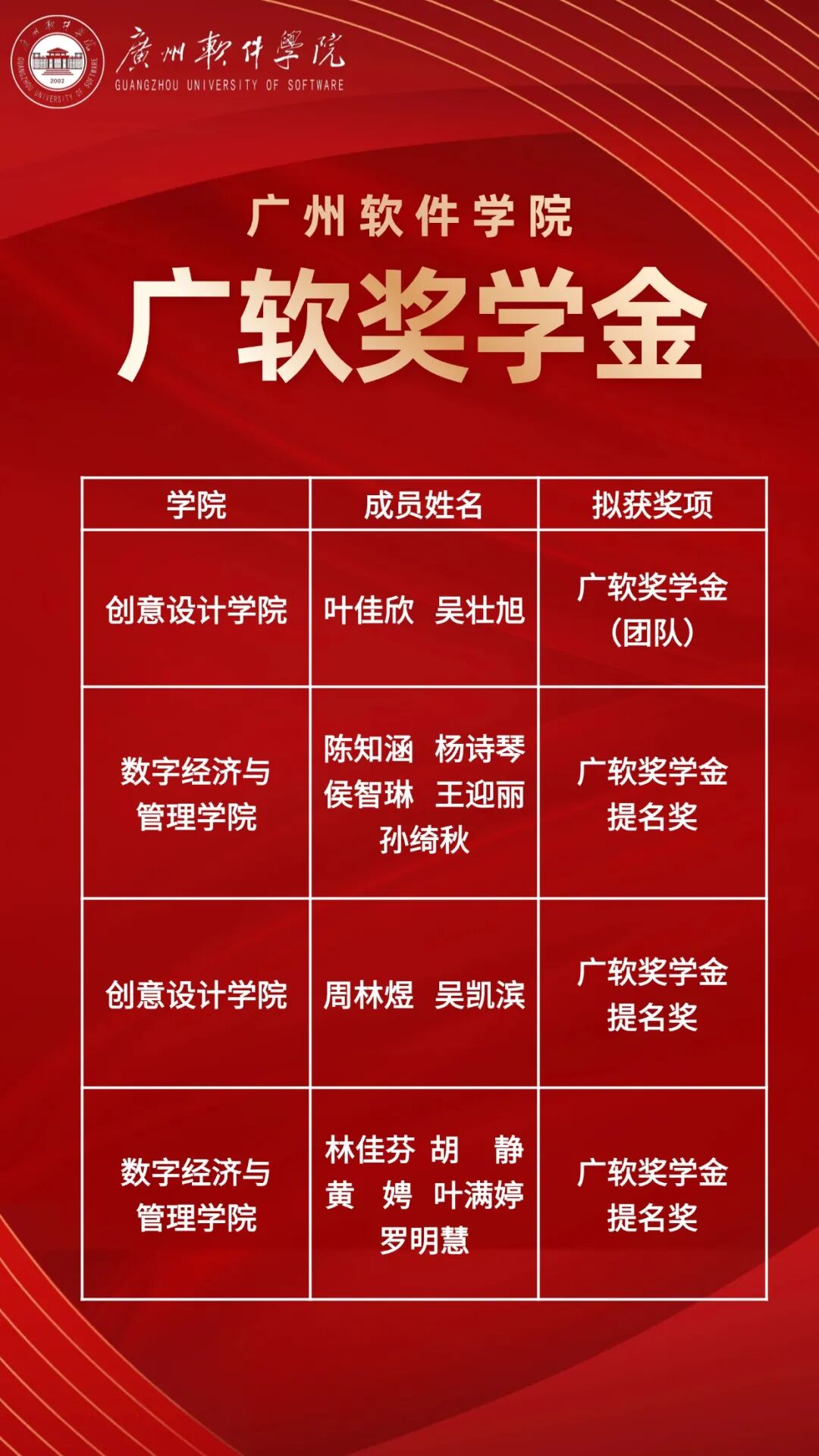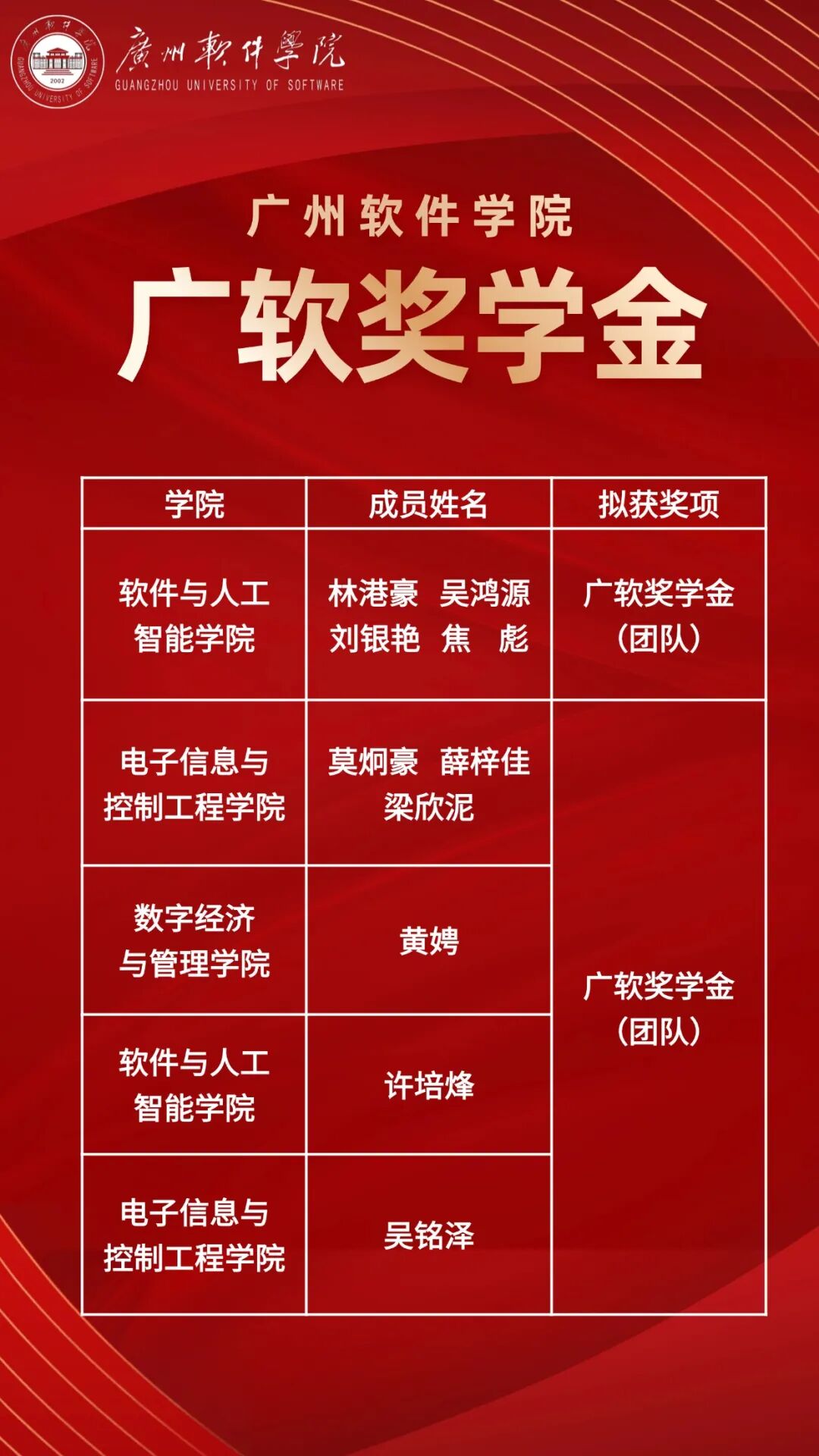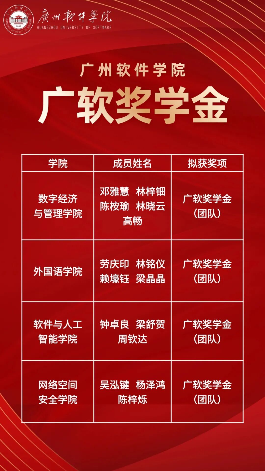 广软奖学金(团队)获奖名单
