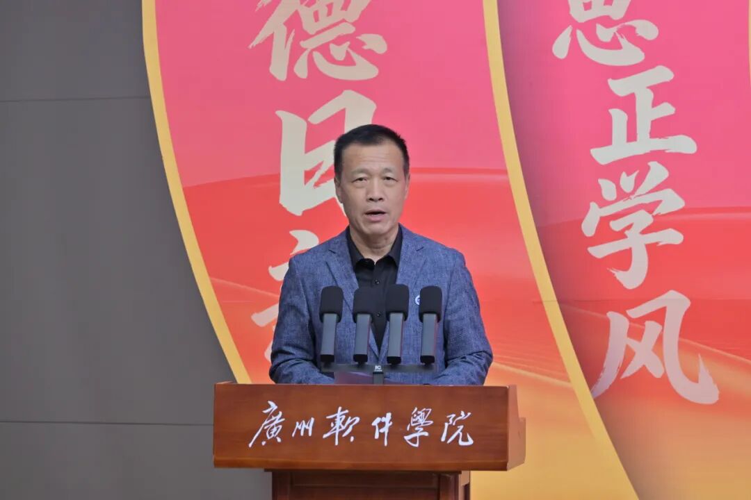 会上,张广金代表学校作《以评促建 长效为纲——广州软件学院2025年学风建设总结报告》。报告指出,2025年是学校迎接本科教学工作合格评估的关键之年。学校始终坚持立德树人根本任务,紧扣评估要求,全面构建具有广软特色的学风建设体系。通过强化顶层设计、创新建设载体、深化过程管理三大路径,学风建设取得突破性进展,机制体制更加健全,“一院一体系”特色模式成效初显;育人氛围日益浓厚,学科竞赛、创新创业成果丰硕;以评促建效果显著,学校综合排名及社会声誉持续提升。报告也客观分析了当前在品牌建设、协同机制、赛教融合、长效帮扶等方面存在的不足,并明确提出下一步将围绕“品牌铸魂、协同聚力、赛教融合、精准施策”四大方向持续发力。张广金强调,2026年是评估冲刺与学风建设的大考之年,需全员全力以赴,以优良学风迎接评估,推动学校教育事业高质量发展。