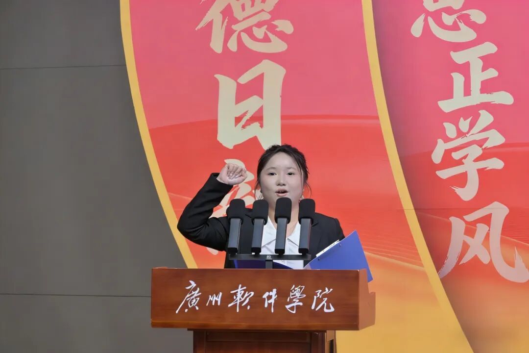 会上,学校学生会主席胡丹丹同学带领全体与会学生代表进行了诚信考试宣誓,庄严承诺遵守考纪、诚信应考,展现了广软学子良好的精神风貌。