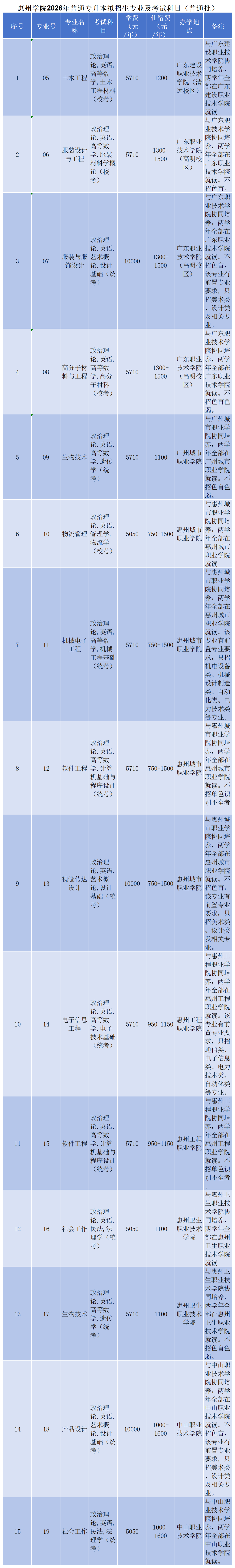 为贯彻落实教育部有关文件精神,根据《广东省2026年普通高等学校专升本招生工作规定》的通知要求,现制定惠州学院2026年普通专升本招生简章。