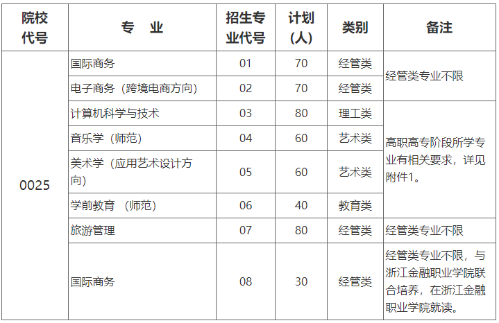 (四)所学专业需符合我校规定,详见《浙江外国语学院2022年专升本各类别所含专业范围对照表》(附件1)。