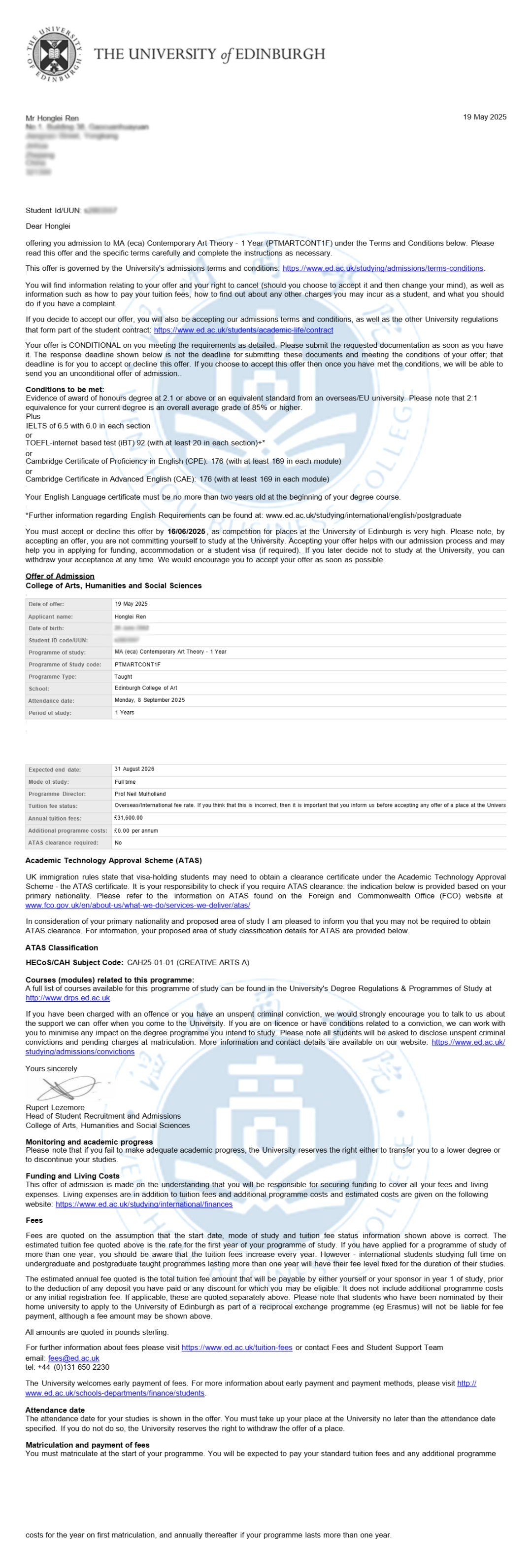他靠着作品力+GPA+项目背景拿下:🎓爱丁堡大学🎓墨尔本大学🎓悉尼大学🎓利兹大学(最终入读)……