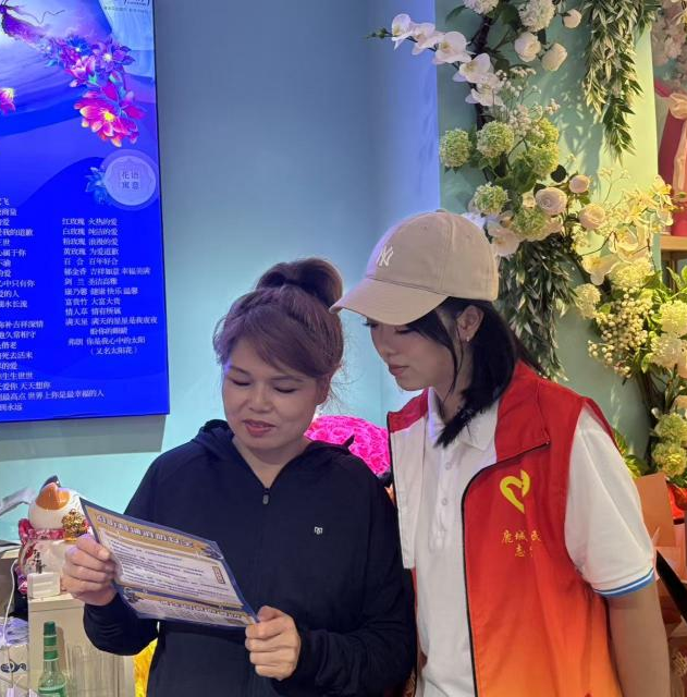 而在社会公益服务的岗位上,她用两年多的时间坚守书写了青年学子的责任与担当。她累计策划4次志愿活动,带队开展20次志愿活动,发布80次活动通知,个人参与志愿活动超70次,累计工时超过300小时。在公益宣传活动中,她向过往行人积极传递环保理念与正能量,用执着践行社会责任;在活动组织过程中,她统筹协调各方资源、灵活应对突发问题,用专业能力保障活动顺利推进。这些经历让她深刻体悟到“奉献、友爱、互助、进步”的志愿精神,也让她明白责任从来不是挂在嘴边的口号,而是用脚步丈量、用行动践行的承诺。