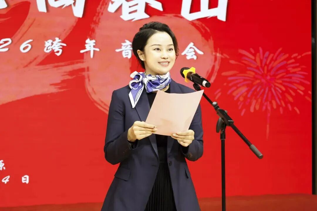 音乐会伊始,校长助理张力心致辞。她首先向全体师生致以诚挚的新年问候,指出本次音乐会是学校落实立德树人根本任务、推进文化育人的生动实践,充分肯定了过去一年师生在教育教学和校园文化建设中取得的扎实成效。致辞中,她以“乐问岁安”深情回顾师生携手奋斗的温暖历程,以“心向春山”殷切勉励全体师生在新的一年继续坚定理想信念、锤炼过硬本领,自觉把个人成长融入学校发展和时代需求之中,以更加昂扬的奋斗姿态共同奔赴崭新征程。