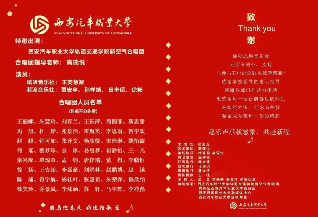西安汽车职业大学校长李瑞明,校党委书记孙冰红,执行校长雷亚萍,副校长乔祎、李云集、席成孝,校长助理左浩、张力心出席晚会,各二级学院院长、白鹿原校区各部门负责人及师生代表参加晚会。