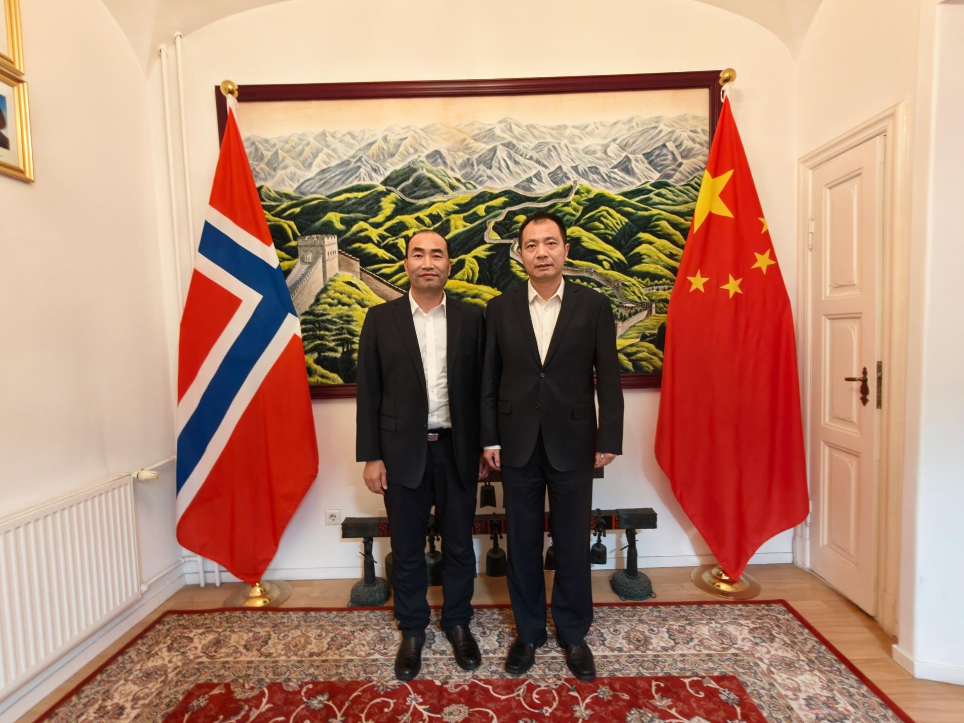 在挪威期间,代表团访问了中国驻挪威大使馆,与使馆代办周宁宇、教育事务秘书乔丹进行座谈。双方围绕中挪绿色转型、经贸合作、科教交流、海洋经济、交通基建等议题深入交换意见,并探讨了在电动汽车、海洋工程、智慧交通等领域的具体合作路径。双方一致认为,应进一步巩固现有合作渠道,推动高校、科研机构与企业间务实项目合作,依托山东与挪威的互补优势,深化在绿色转型、科技创新、人才交流等领域的协同发展,实现互利共赢。