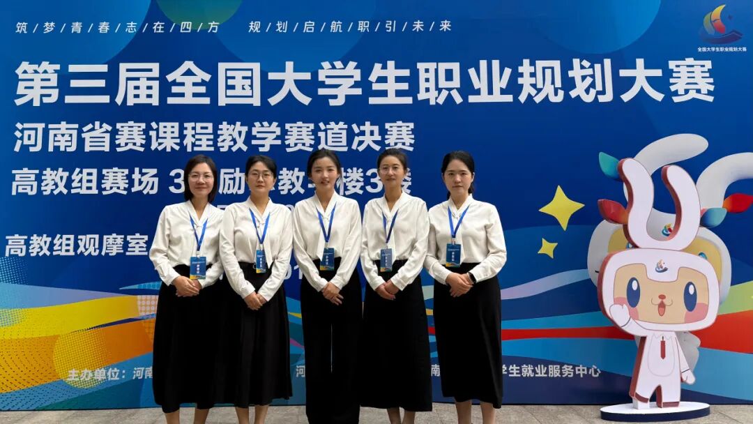 11月22日至23日,第三届全国大学生职业规划大赛河南省赛课程教学赛道决赛在河南经贸职业学院举行,来自全省高校的101支队伍、600余名教师参赛。我校选派贾镔(主讲)、张晓燕、孔颖、李雯雯、李萌萌5名职业规划与就业指导教师组队参赛,她们凭借硬实的课程内容、务实的实践改革、扎实的团队建设,完成了精彩的课程建设汇报、无学生教学展示及互动答辩,将生涯教育理论融入实际问题解决,彰显出优秀教学功底和创新教学思维,取得省内外专家评委认可,荣获高教组银奖。
