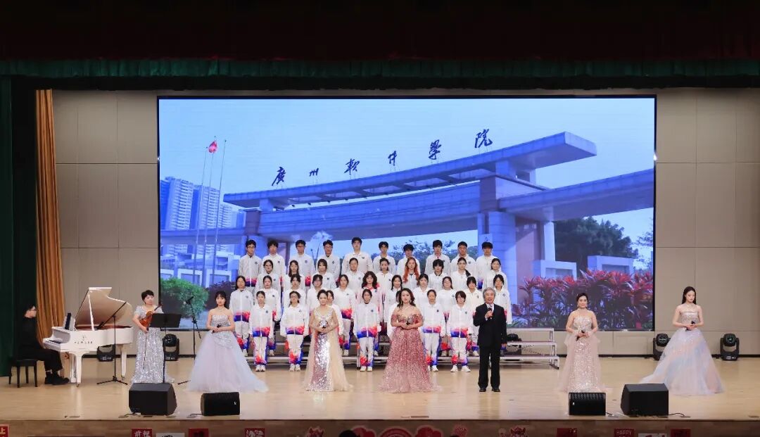 晚会尾声,《歌唱祖国》合唱声起,全场演员齐声放歌,旋律激荡人心、萦绕不散,定格下江门校区首届新年晚会的高光收官时刻。