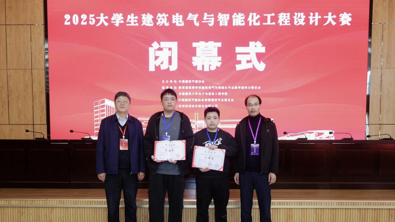 12月7日,由教育部高等学校建筑电气与智能化专业教学指导分委员会指导、中国建筑节能协会主办的2025年大学生建筑电气与智能化工程设计大赛在安徽建筑大学顺利闭幕。福州理工学院智能建造学院建筑电气与智能化专业赖礼泮、裴潇湘共同指导的队伍(参赛学生:李宁馨、揭小丹)荣获全国二等奖(总排名第5);汤坤元、王聪共同指导的队伍(参赛学生:黄祥华、郑毅豪)荣获全国优胜奖。