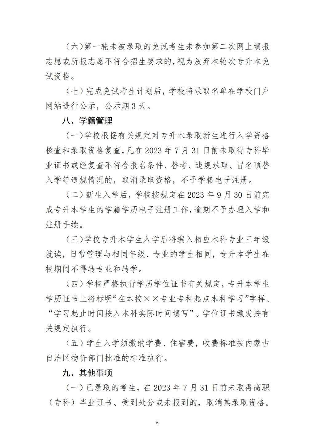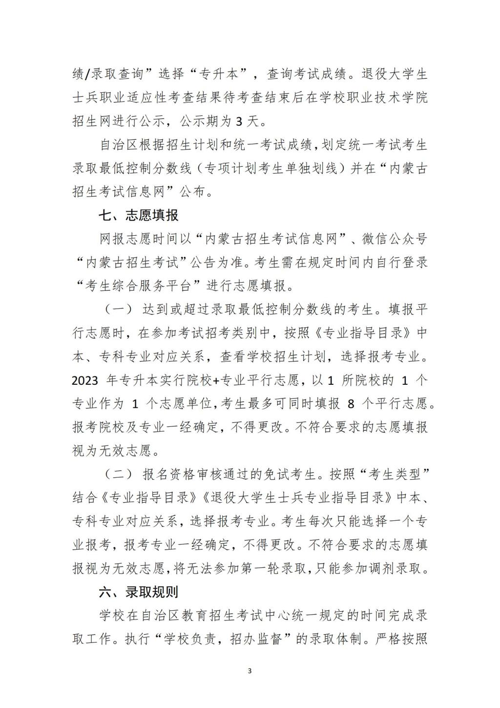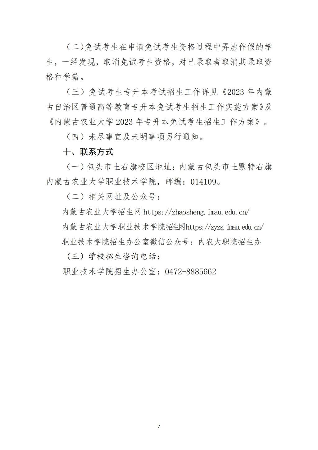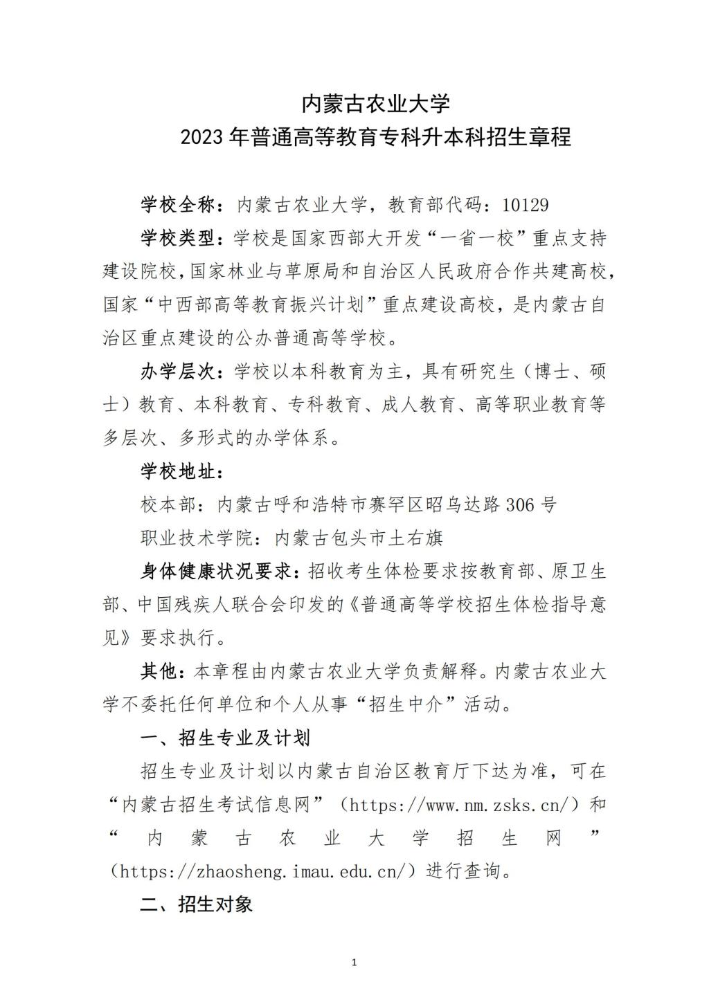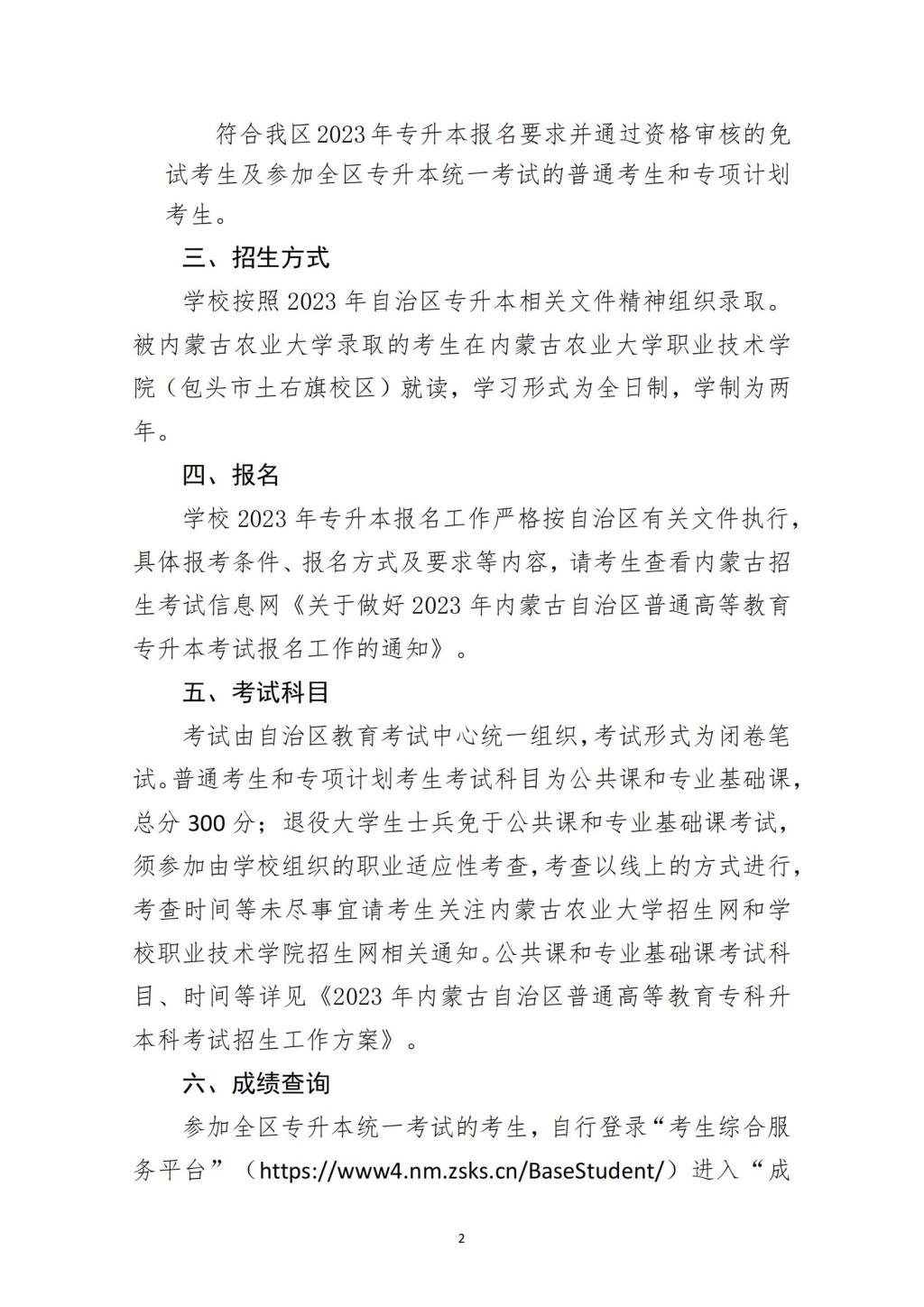 内蒙古农业大学2023年普通高等教育专科升本科招生章程