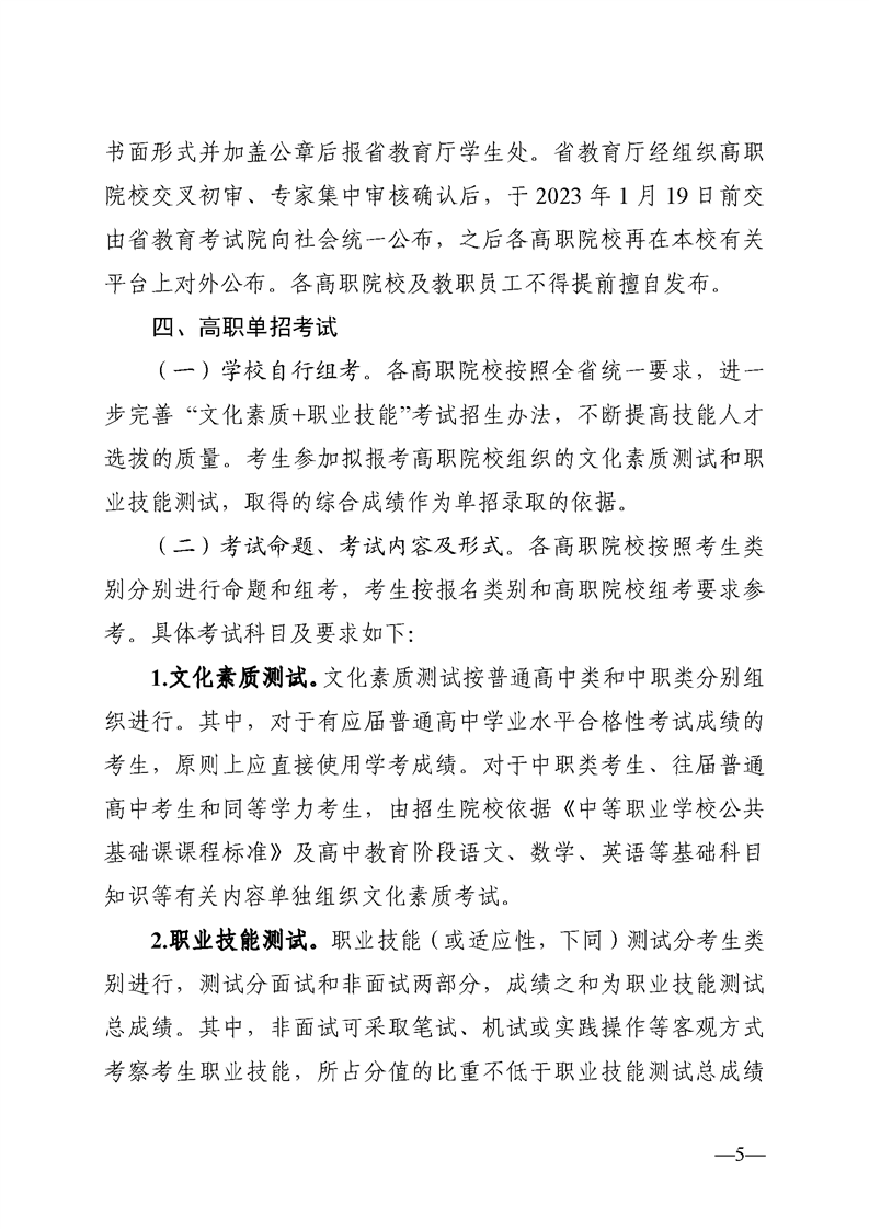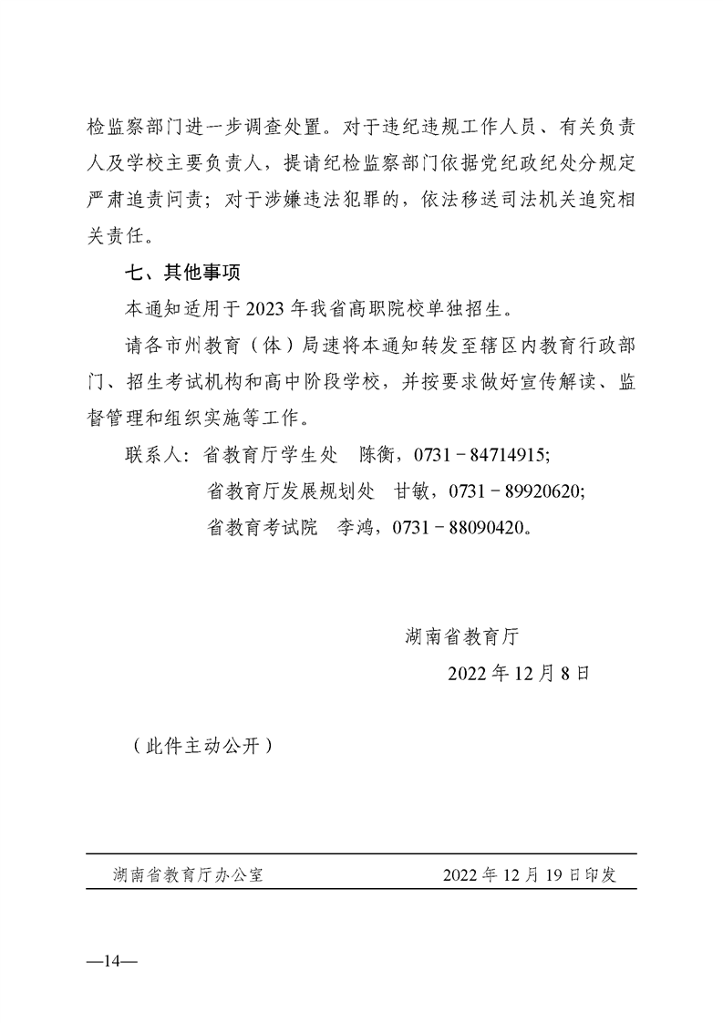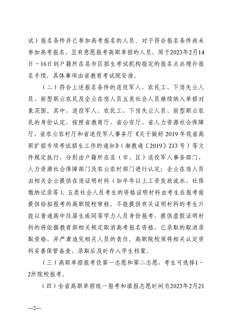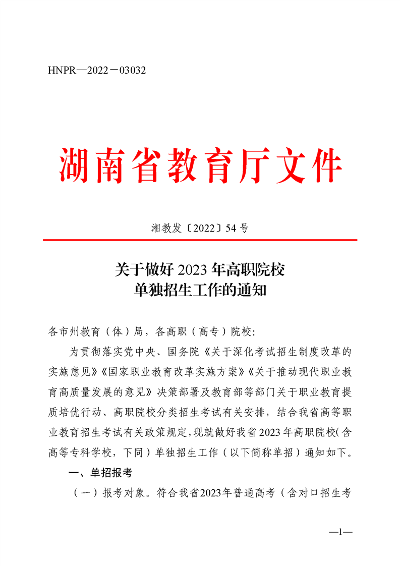 湘教发〔2022〕54 号关于做好 2023 年高职院校单独招生工作的通知