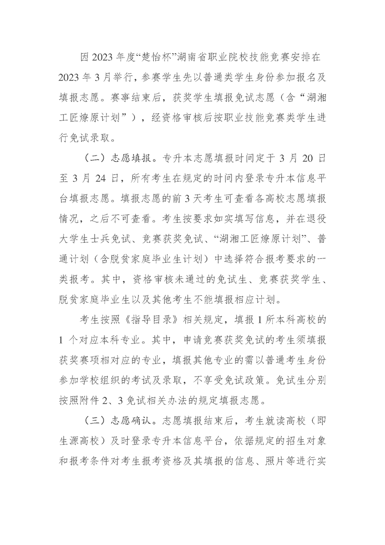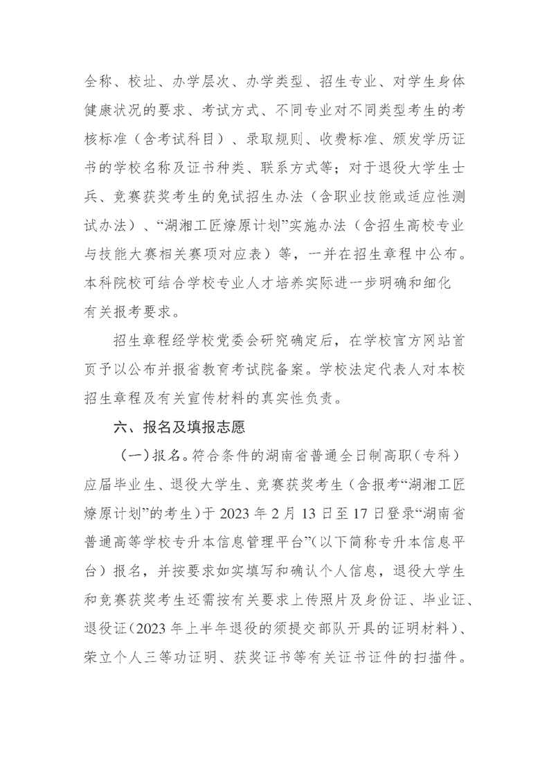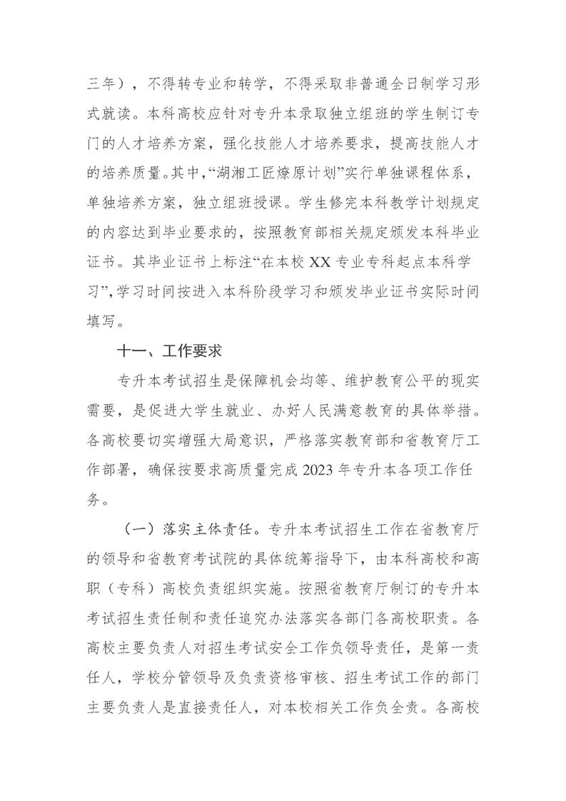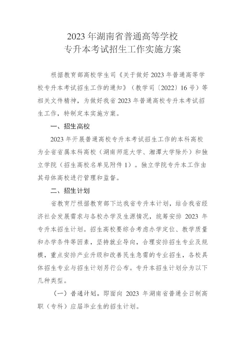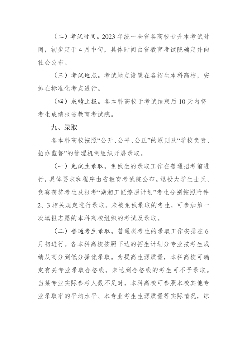 2023年湖南省普通高等学校专升本考试招生工作实施方案