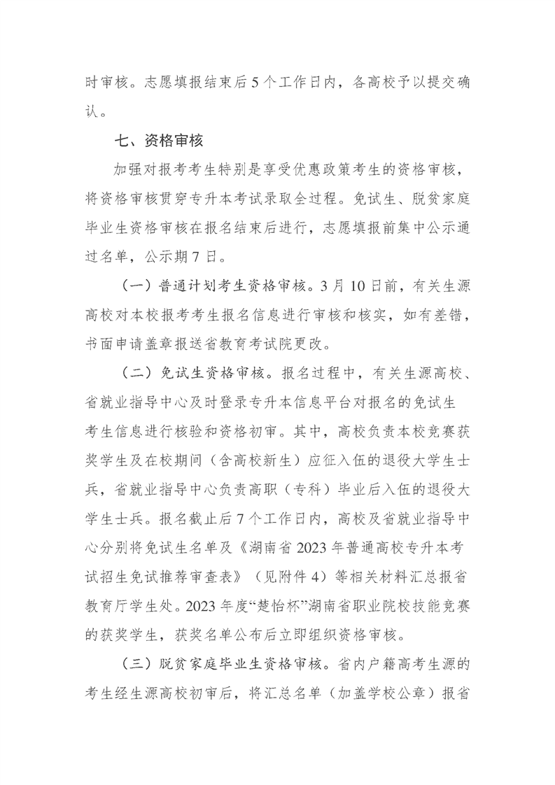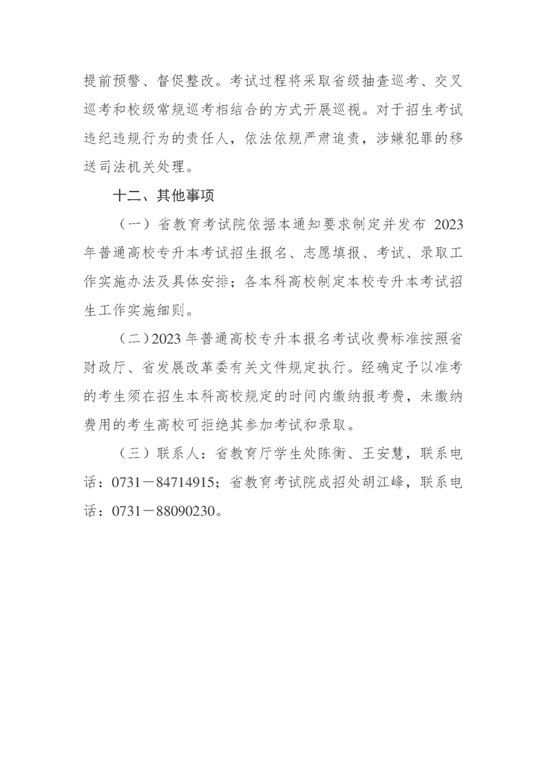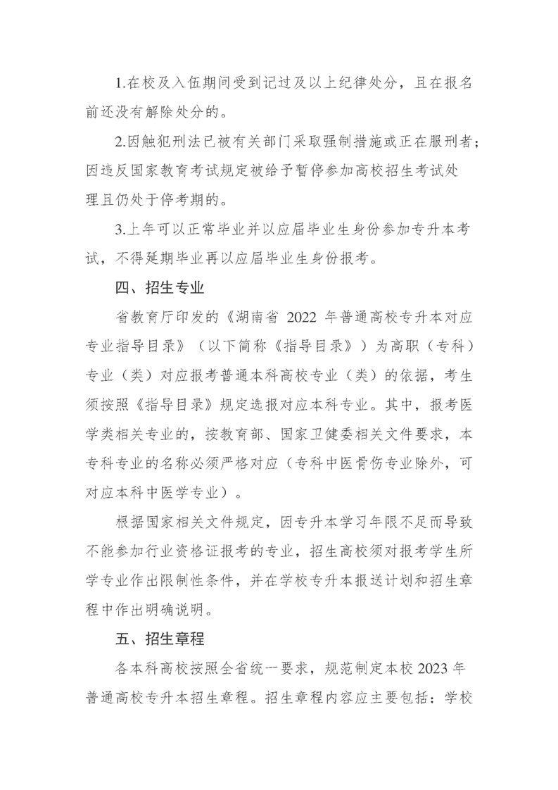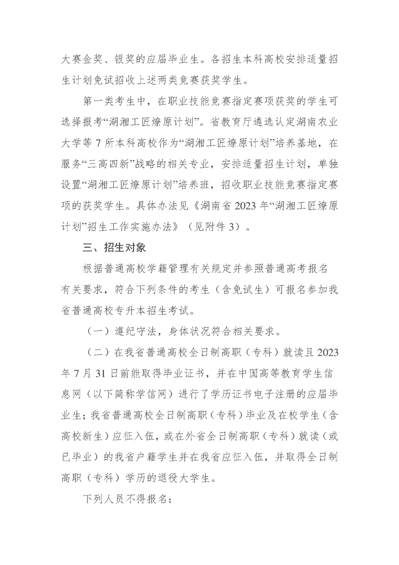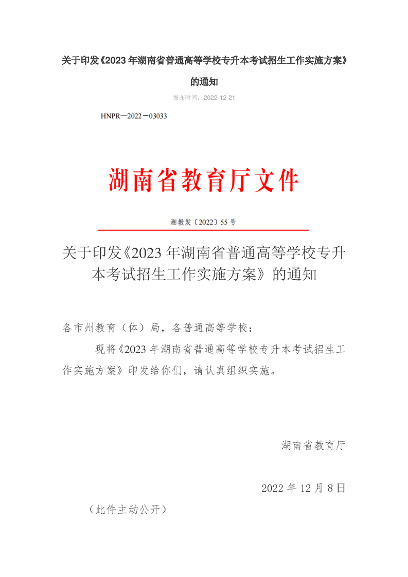 2023年湖南省普通高等学校专升本考试招生工作实施方案