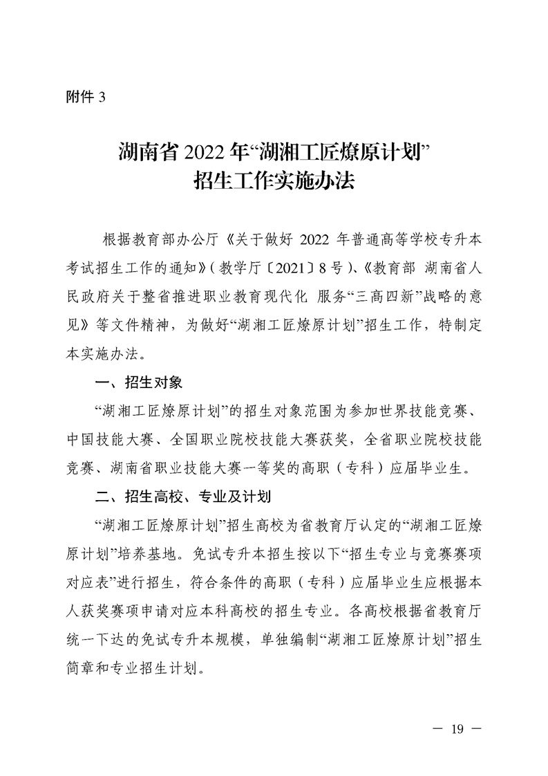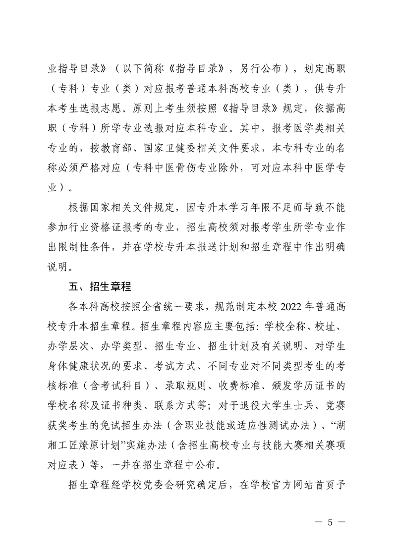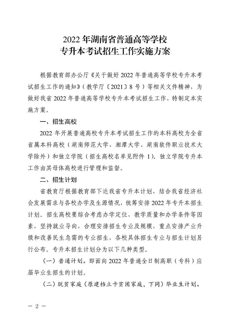 湘教发〔2022〕3号关于印发《2022年湖南省普通高等学校专升本考试招生工作实施方案》的通知