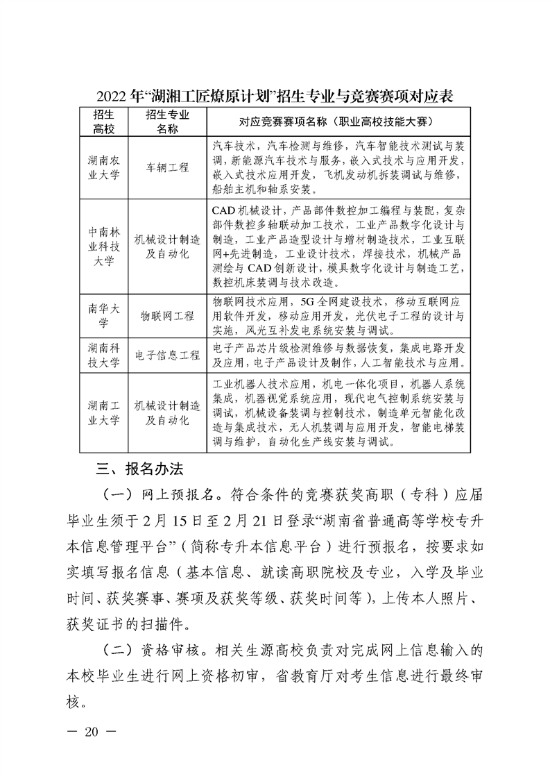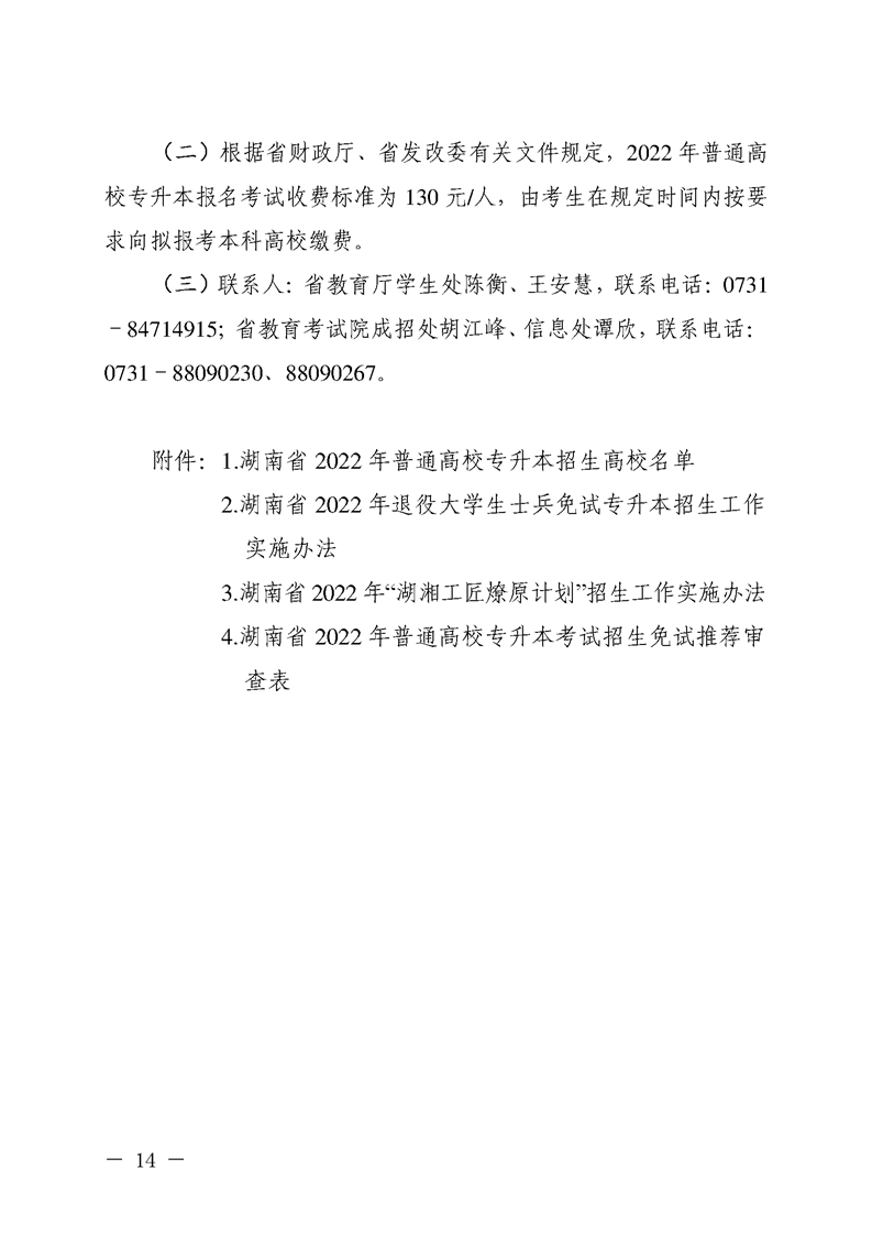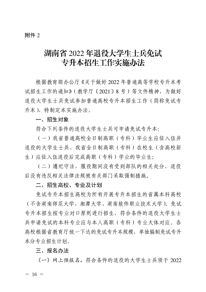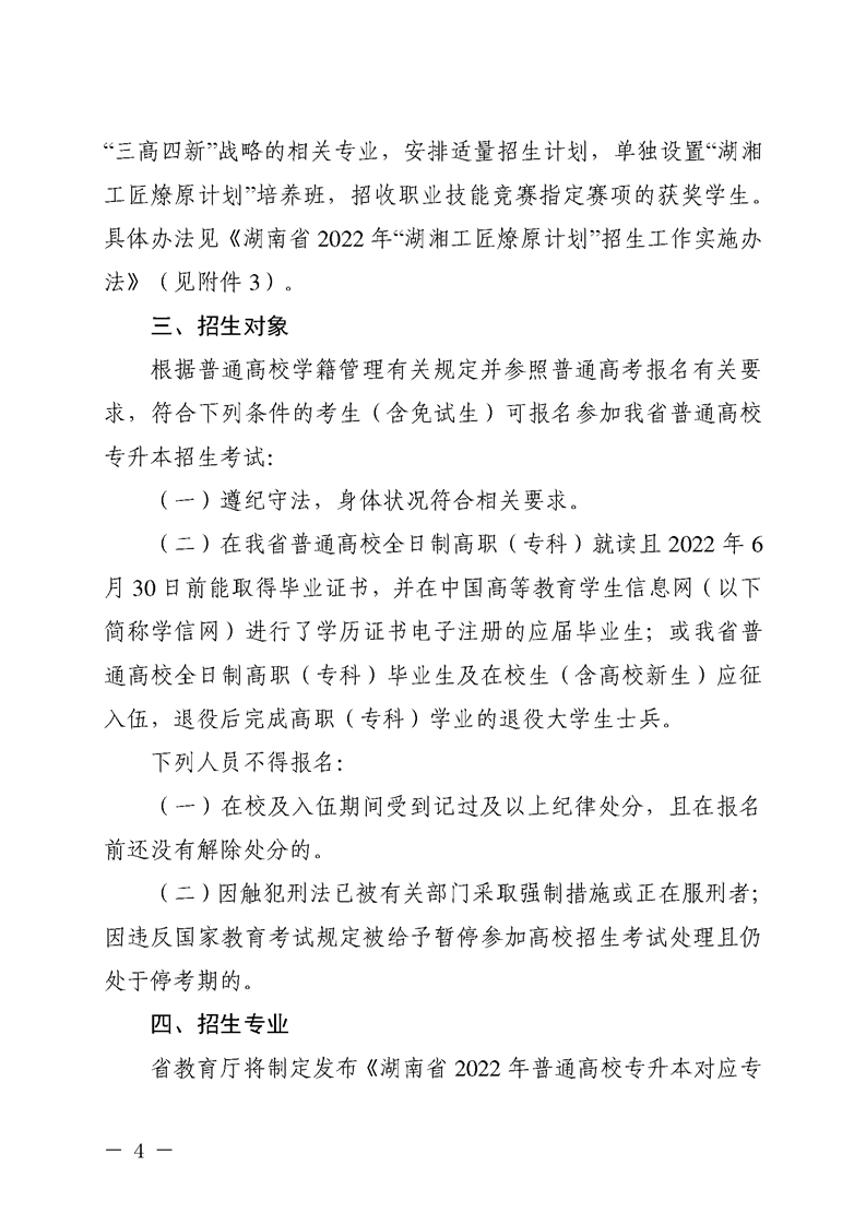 湘教发〔2022〕3号关于印发《2022年湖南省普通高等学校专升本考试招生工作实施方案》的通知