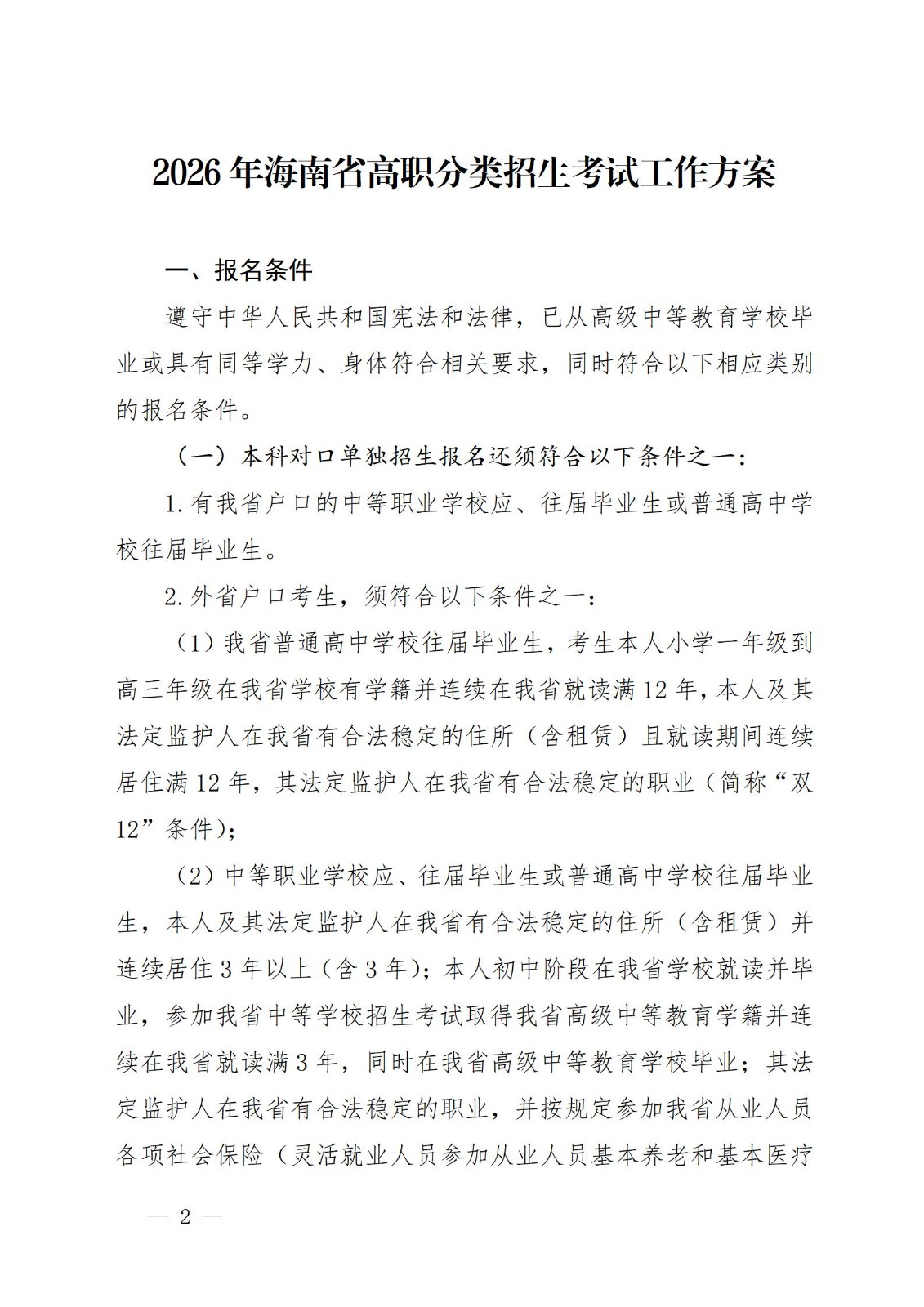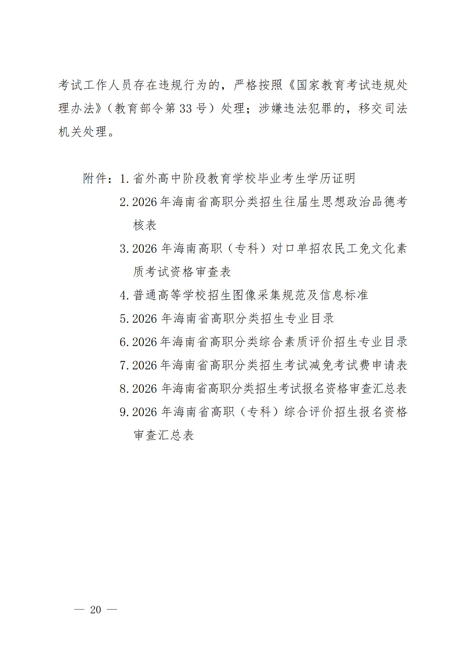 海南省教育厅关于印发《2026年海南省高职分类招生考试工作方案》的通知