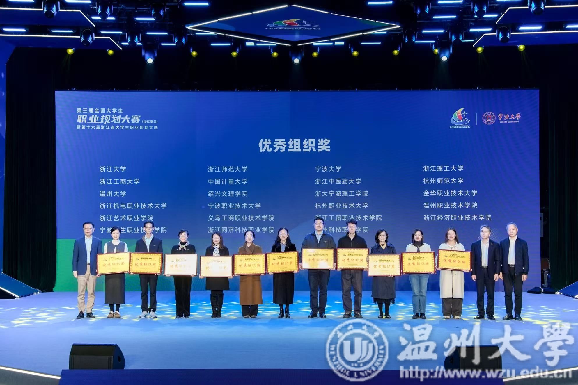 12月19日,第三届全国大学生职业规划大赛(浙江赛区)暨第十六届浙江省大学生职业规划大赛圆满落幕。温州大学参赛团队凭借清晰的职业定位、扎实的专业素养和丰富的实践积累,在大赛中捷报频传,共斩获金奖3项、银奖3项、铜奖5项,4位教师获评“优秀指导教师”荣誉称号,学校蝉联“优秀组织奖”。