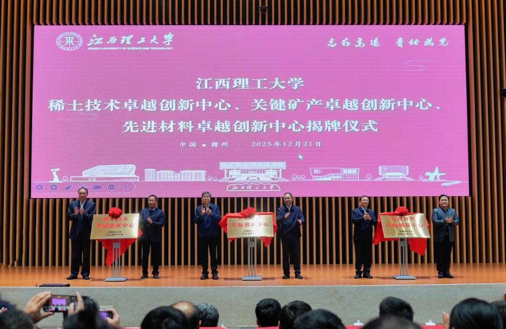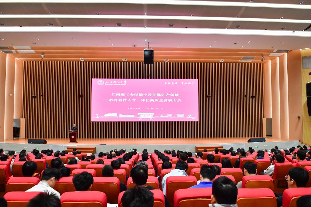 本网讯 12月21日,江西理工大学稀土及关键矿产领域教育科技人才一体化高质量发展大会在三江校区志远会议中心举行。会议进行了稀土及关键矿产领域三大卓越创新中心揭牌暨中心主任聘任仪式,并邀请了七位院士和专家做客我校“清江学术论坛”。这次大会的召开,是学校全面吹响“加快创建稀土及关键矿产领域世界一流大学”的集结号,是学校立志攀登学科高峰、构建发展新格局、激活高质量发展新动能的冲锋号,对于学校提升稀土及关键矿产领域原始创新能力、服务国家战略科技力量具有深远意义。