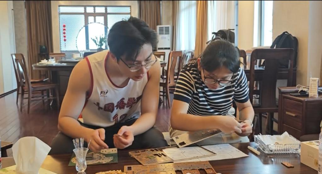 创作过程中,深夜的线上研讨与跨学科思维的持续碰撞,不仅帮助团队攻克了技术与叙事上的难题,也深化了他们对跨文化传播的理解——真正有效的文化沟通,不在于符号的堆砌,而在于找到能够超越国界的情感共鸣点。家的眷恋、代际传承、人与自然的和谐,这些都是国际观众能共情的入口。为此,参赛视频以建筑系学生Star的梦境为切入点,通过Star与客家围屋工匠曾祖父的跨时空相遇,让冰冷建筑成为承载民族记忆与匠心传承的“活的堡垒”。“梦境穿越”的双重视角加上电影化的镜头语言赋予作品极强的视觉张力;高空俯拍的“回”字形布局以及特写的三重门、沉浸式的手持镜头让文化理念转化为可感的视觉体验;而“窗边赏模型”的镜头衔接更成为暗合“传承”内核的点睛之笔。客家围屋不仅是历经风雨的古老文化载体,其中所承载的匠心坚守与和谐理念更是中华文明厚度与历史纵深的生动注脚。