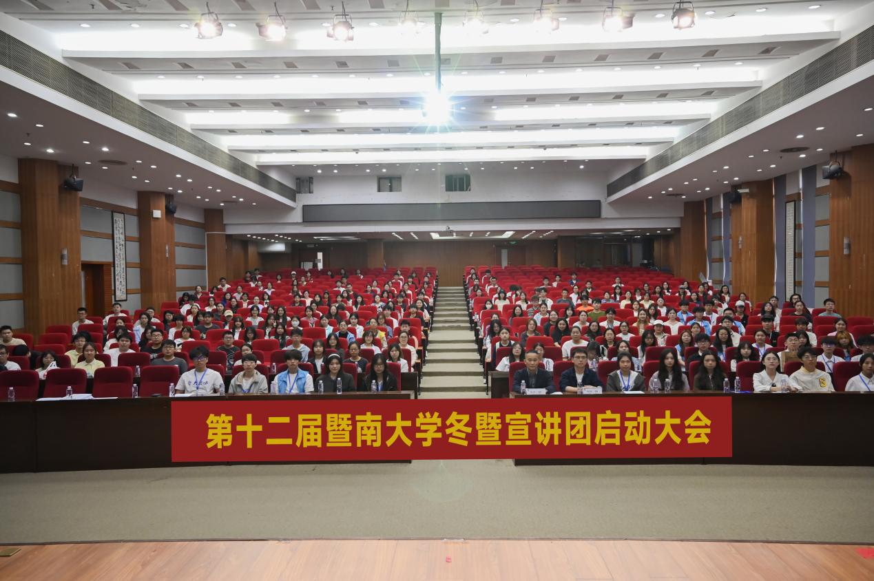 2025年12月6日至21日,暨南大学第十二届“情系母校,圆梦暨大”2026寒假招生宣传志愿行活动(简称“冬暨宣讲团”)启动大会暨队长培训会在三地五校区召开。学校本科生招生办公室主任朱子木、副主任罗颖,珠海校区学工办于保山、胡欣月、沈大文,华文学院张水淼,本科生招生办公室王常鑫、费正彬,以及来自三地五校区的招协成员和1100余名冬宣队长参与此次启动大会。大会由招生宣传协会各校区分会承办。