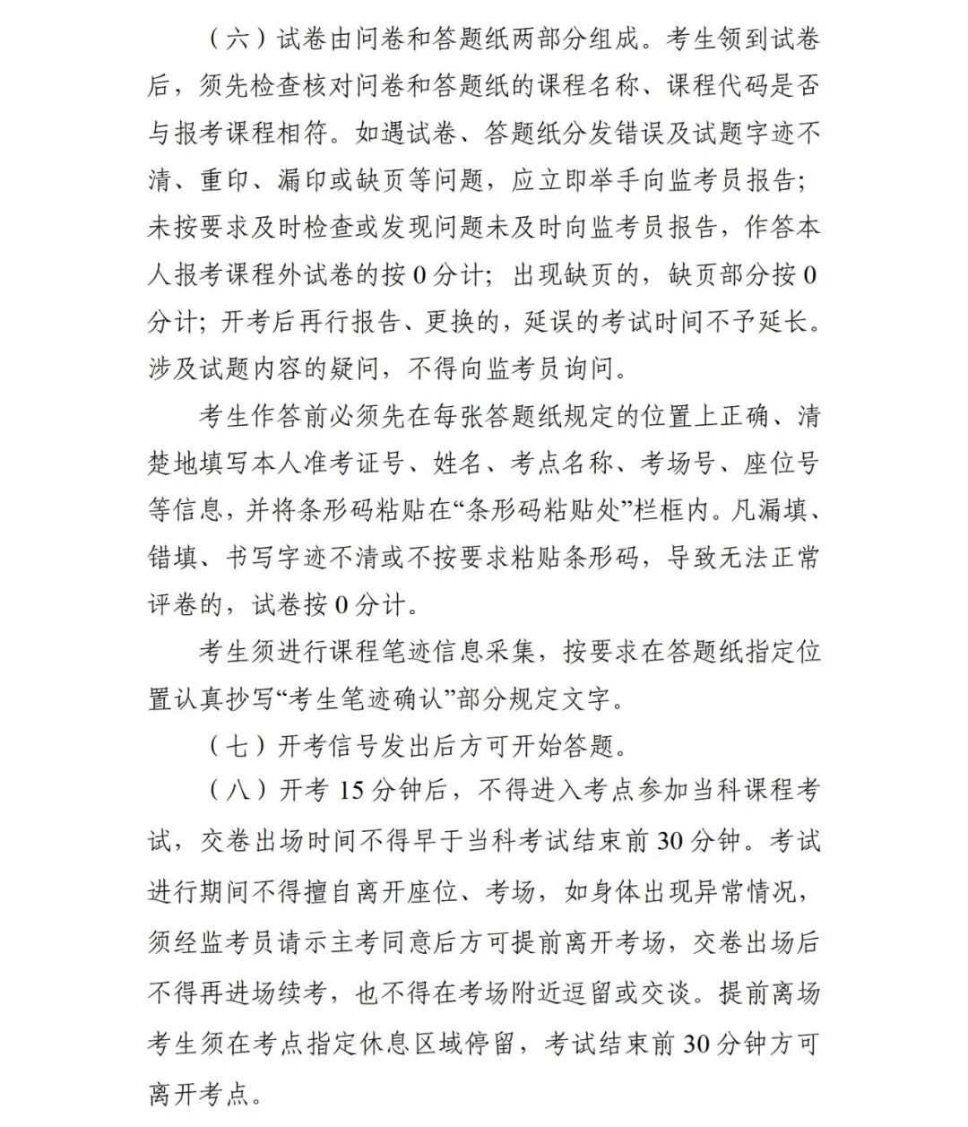 3.落实笔迹信息采集要求。考生须进行课程笔迹信息采集,按要求在答题纸指定位置认真抄写“考生笔迹确认”部分规定文字,按教育部有关规定,未进行笔迹采集的课程合格成绩将无法转出外省。已到考生须在点名卡对应签名框内签名确认。
