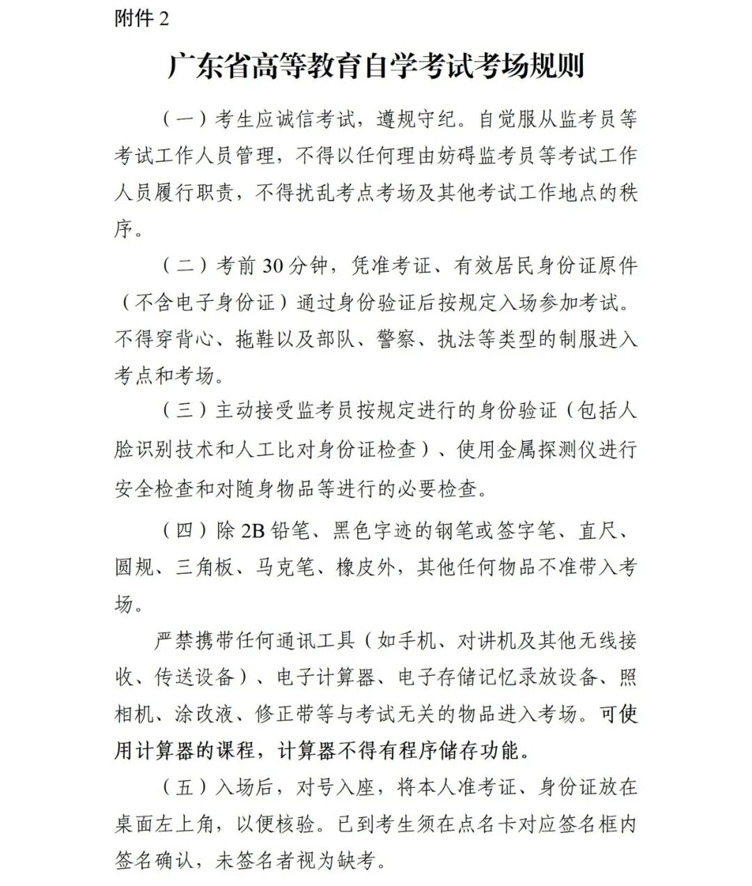 考场实行全覆盖、全时段网上监控和录像,监控视频和后期的录像回放将作为认定考试违规的依据,请考生自觉遵守考场纪律(《广东省高等教育自学考试考场规则》见附件2)。试题、答题纸、草稿纸等均属于涉考材料,不允许以任何形式拍照传出或带离考场。特别提醒:考试过程中考生如携带手机、智能手表等具有发送或者接收信息功能的设备,无论是否使用,均将依据《国家教育考试违规处理办法》(教育部令第33号)认定为考试作弊,取消当次考试所有科目成绩。