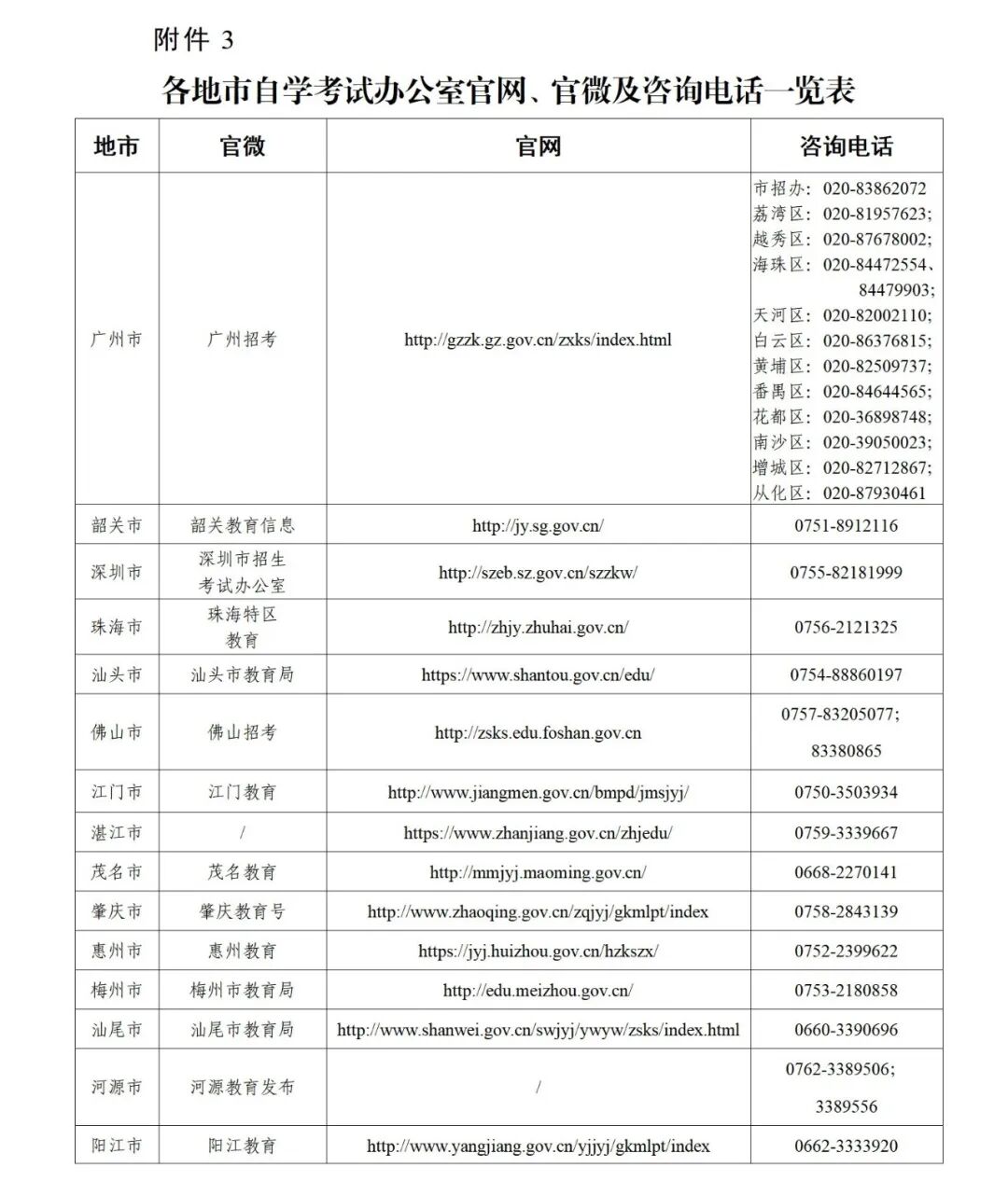 3.各地市自学考试办公室官网、官微及咨询电话一览表