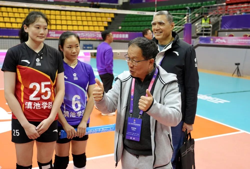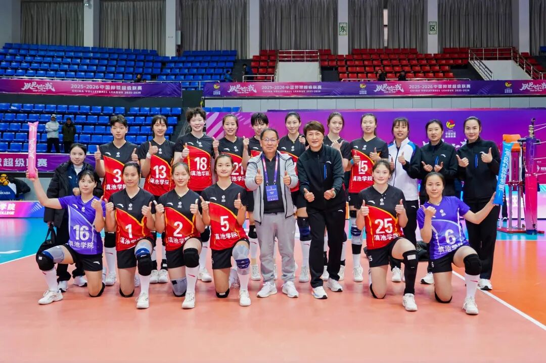 2025年12月27日,滇池学院女排在2025—2026中国排球超级联赛(大理赛区)主场比赛中首战告捷。滇池学院校长甘雪春亲临现场,见证了激烈的对战,为队员们加油鼓劲。赛后,看望了滇院女排全体队员及教练团队,并进行亲切交流。