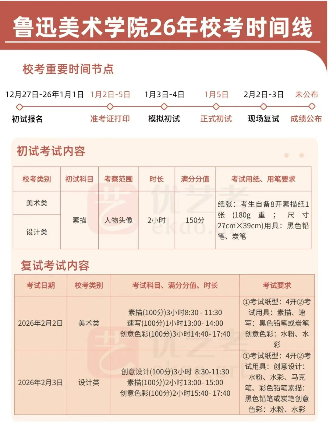 2025年鲁美校考初试报名始于1月8日,而2026年则将报名时间大幅提前至2025年12月27日,仅5天报名窗口期,1月5日便正式开启网络初试,复试也敲定在2月2日-3日,较2025年提前半个多月结束。