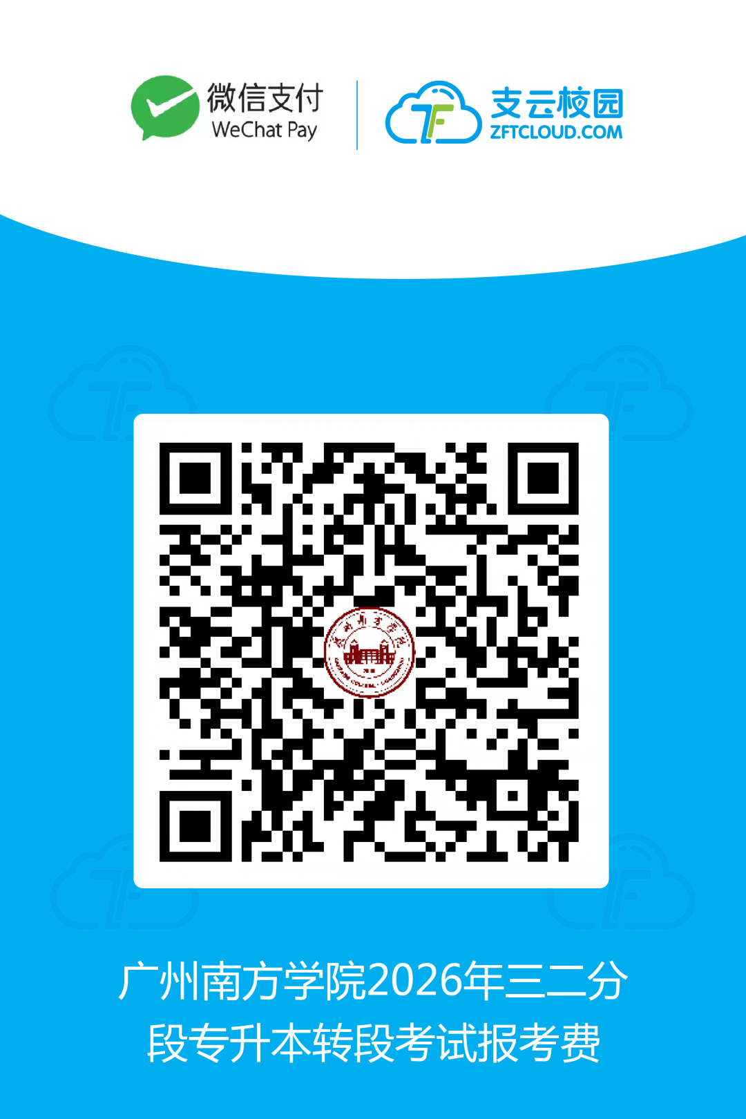微信扫描“广州南方学院2026年三二分段专升本转段考试报考费”二维码(见下图),报考费40元/科,两科共80元。