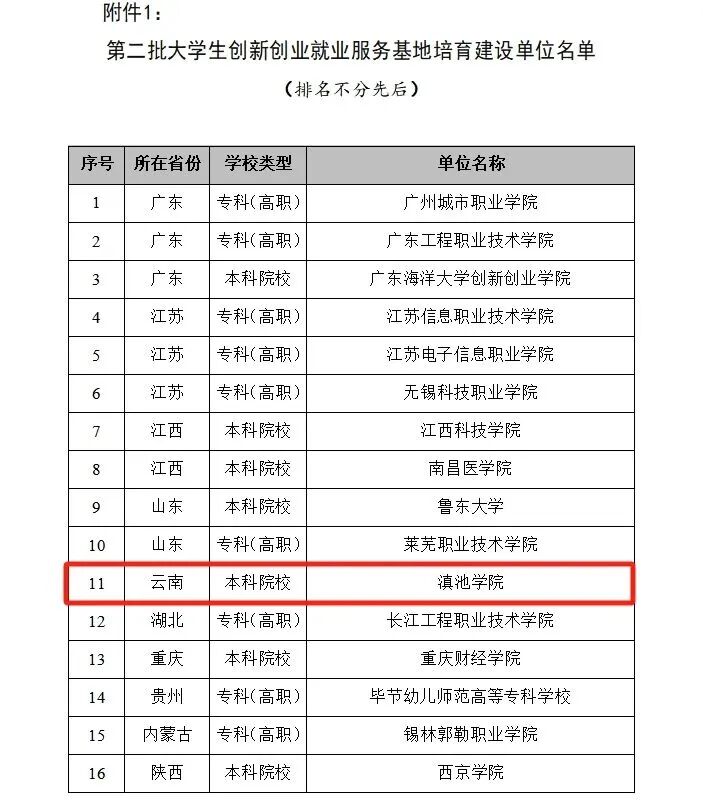• 成功入选第二批“大学生创新创业就业服务基地”培育建设单位,是云南省高校中唯一获批该批次的单位;