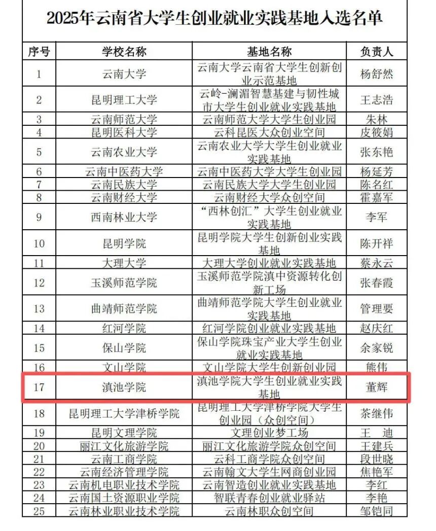 • 成功入选2025年云南省大学生创业就业实践基地;
