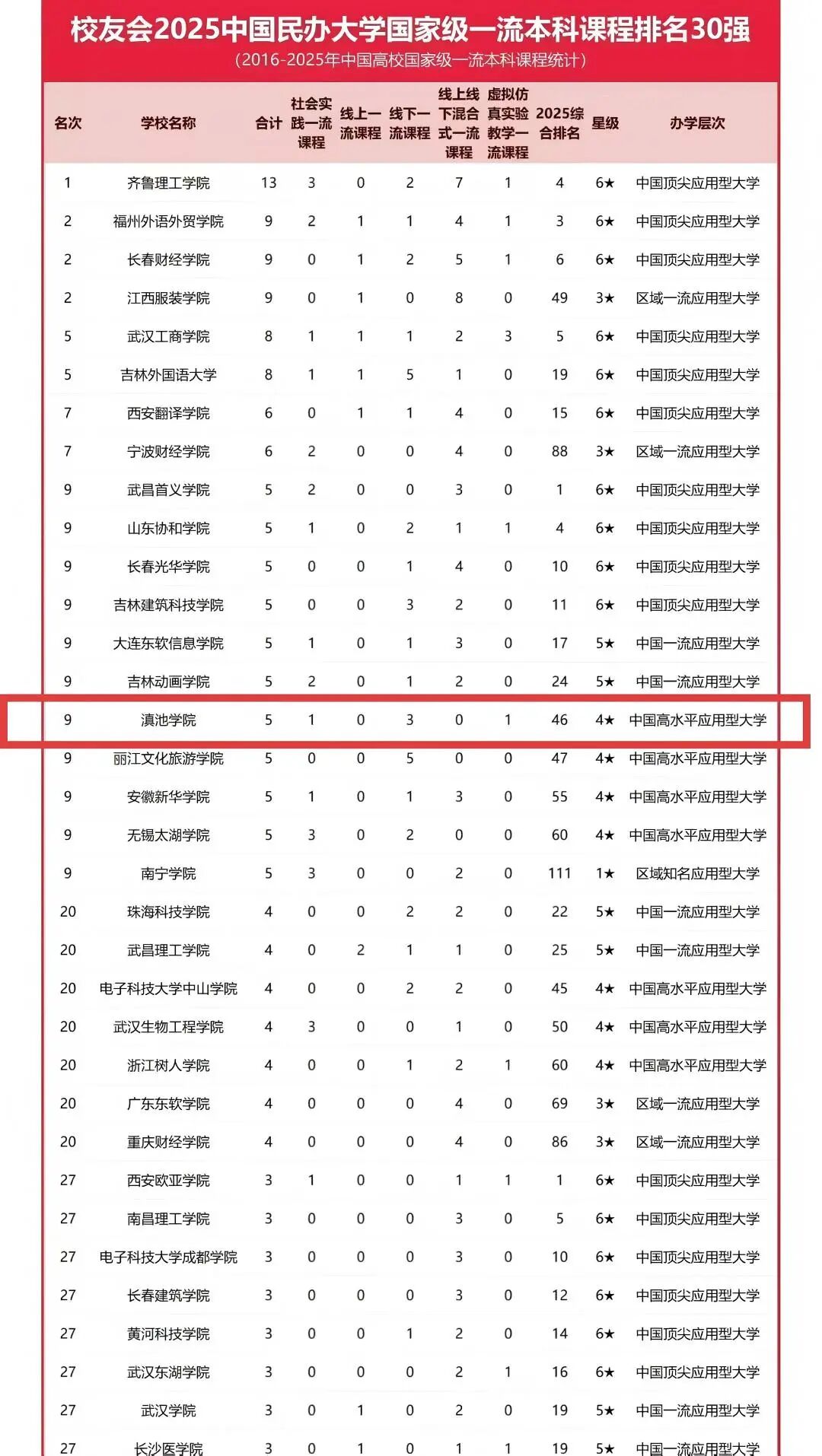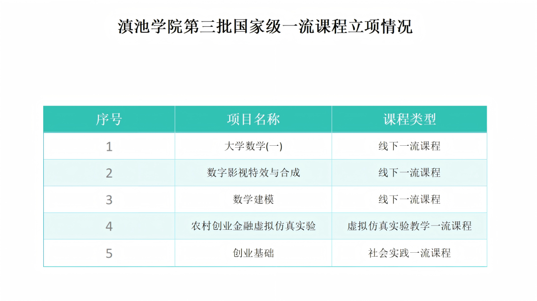• 5门课程入选第三批国家级一流本科课程,总量位居当年全国民办学校第二、云南省民办高校第一,入选校友会2025中国民办大学国家级一流本科课程,排名并列第9名;