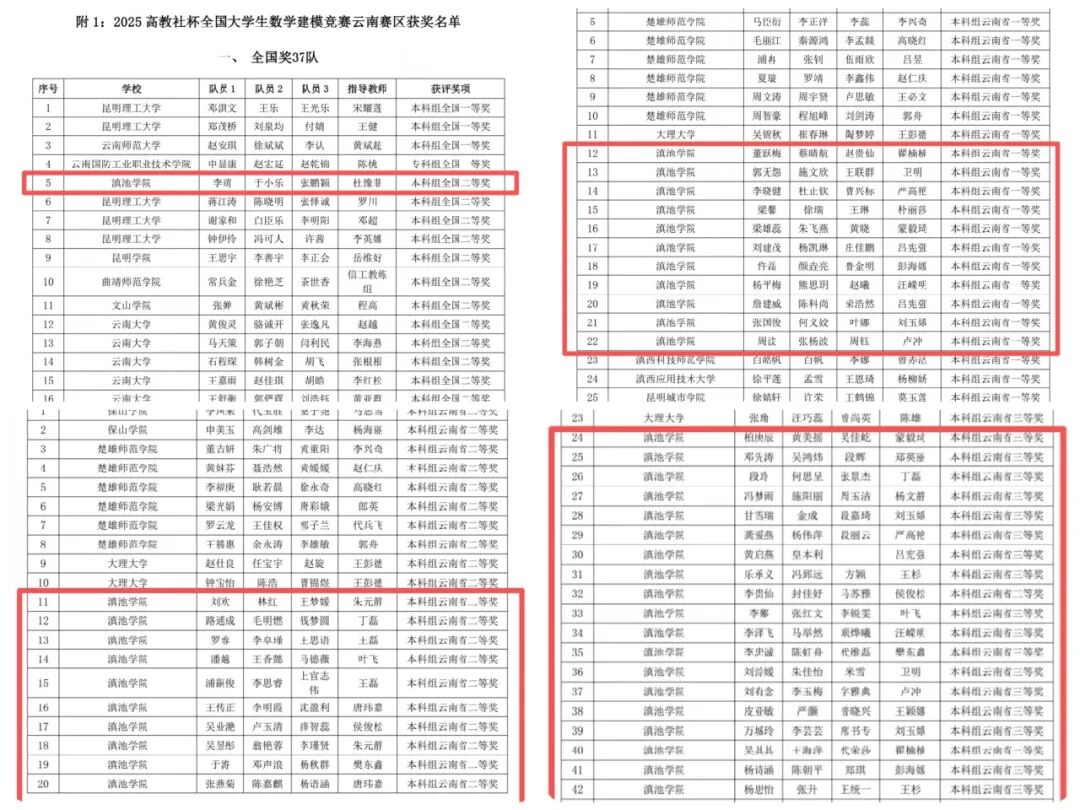 • 在全国大学生数学建模竞赛中,斩获本科组全国二等奖1项,本科组云南省一等奖11项、二等奖11项、三等奖22项,累计获奖45项,获奖数在全省民办高校中排名第一,位居全省高校排名前列;