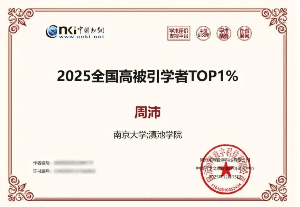 • 1名教授入选“2025中国知网高被引学者TOP1%”;