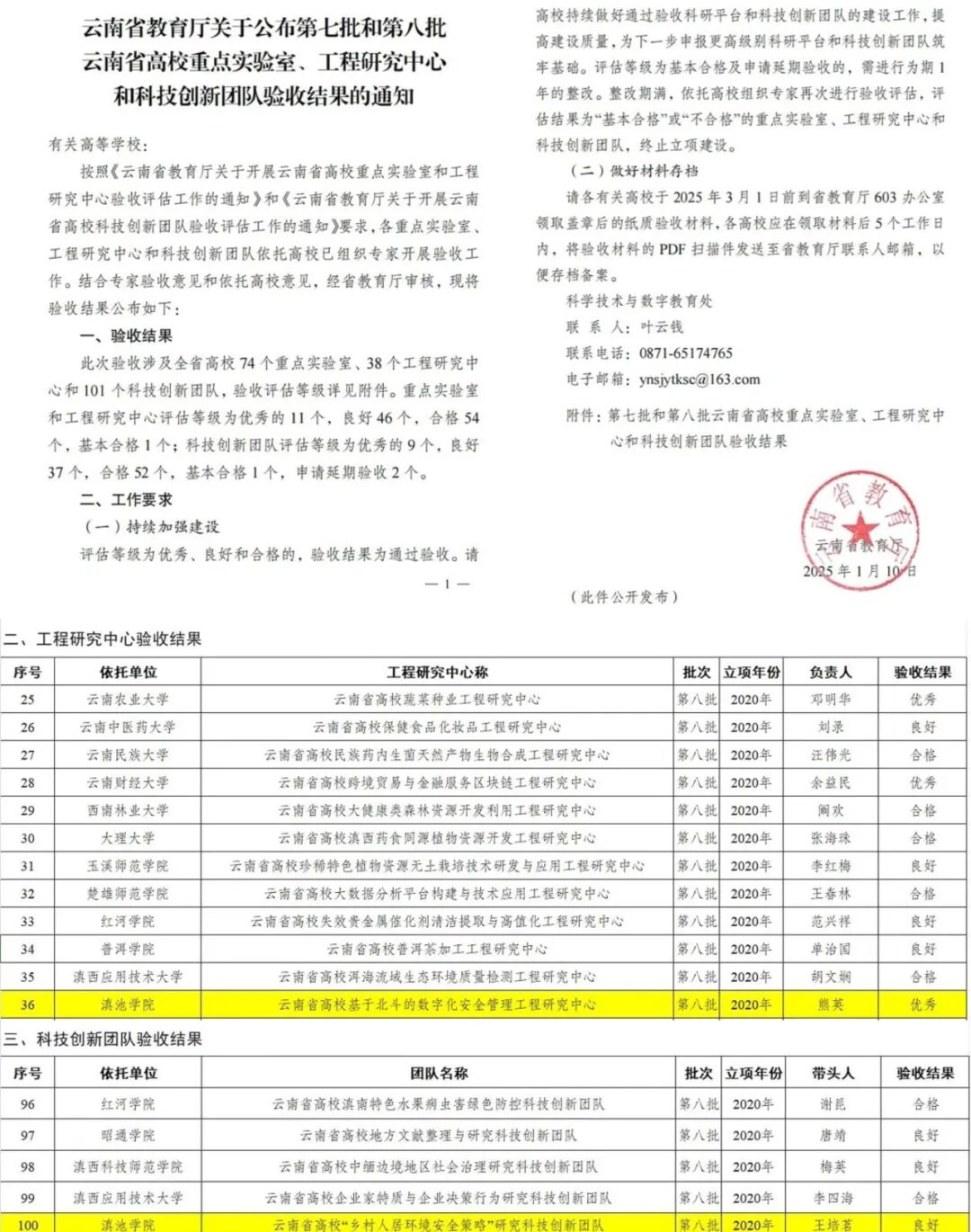 • 滇池学院工程研究中心和科技创新团队顺利通过云南省教育厅验收评估;