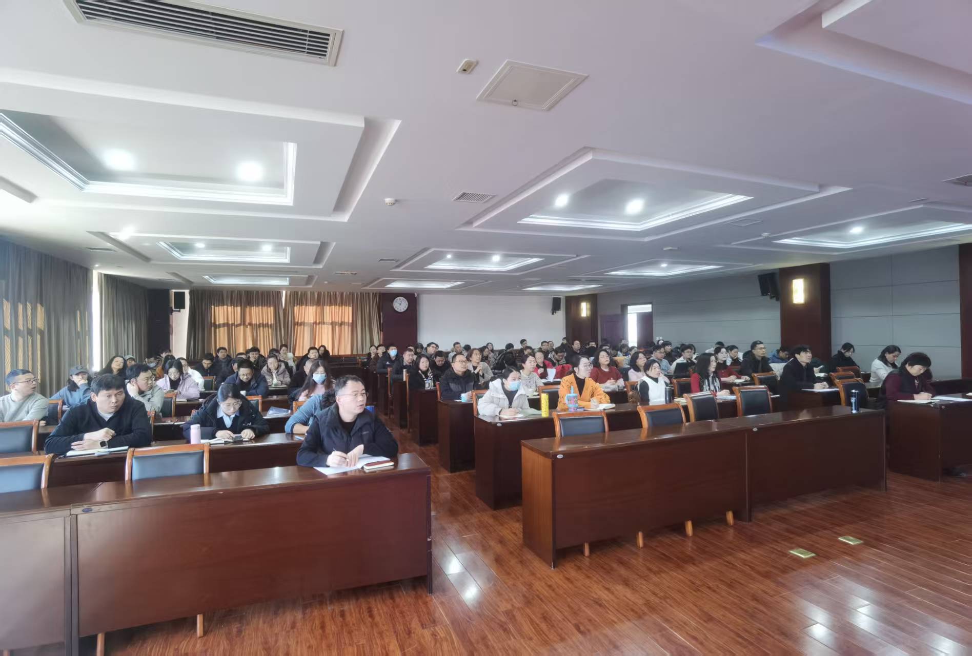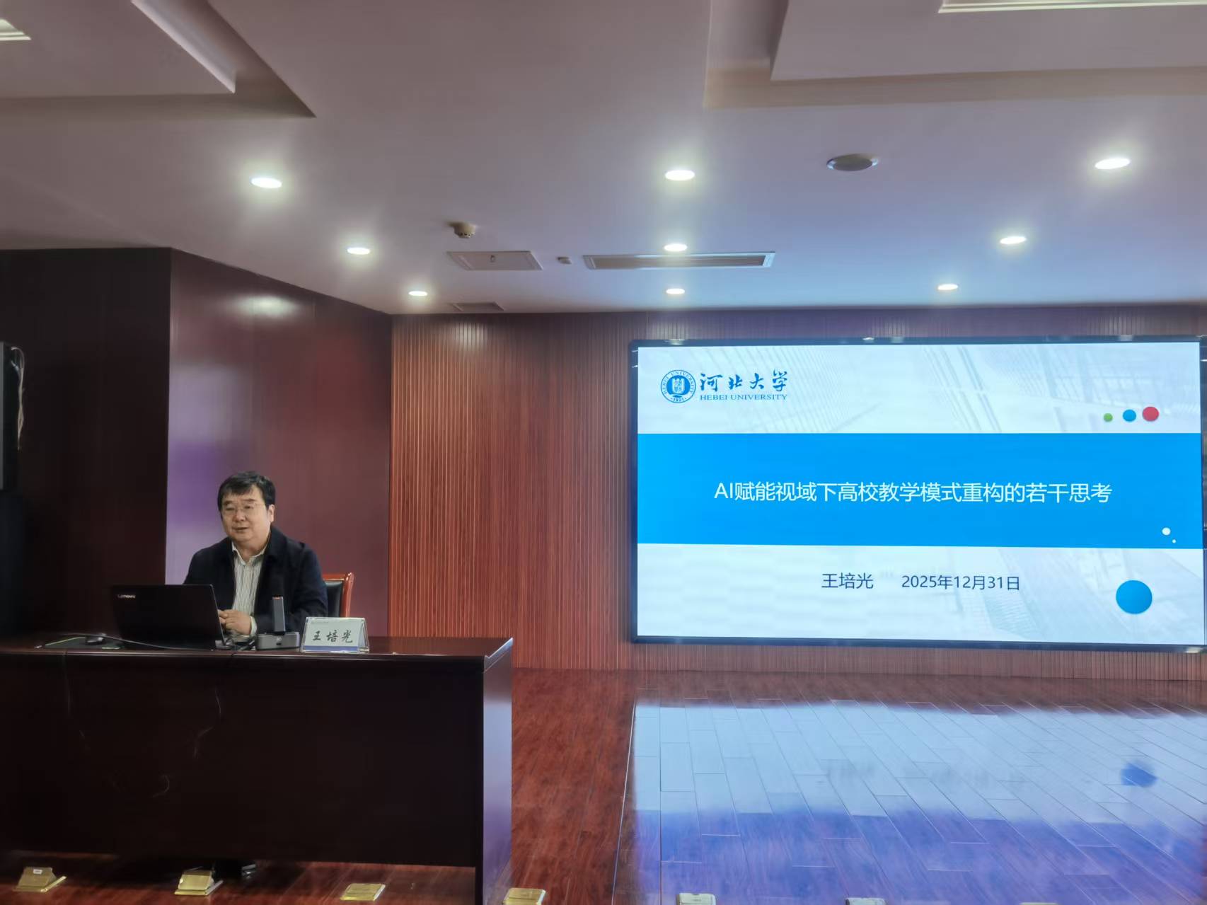 为深入推进教育数字化战略行动,积极探索人工智能技术与高等教育深度融合的路径,2025年12月31日,河北大学原副校长王培光教授应邀,为我校教师带来了一场关于AI赋能视域下高校教学模式重构的高水平讲座。各教学单位分管教学负责人、骨干教师等共100余人现场聆听,讲座由教务处处长荆淑霞主持。