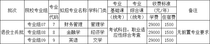 符合退役大学生士兵报名资格的考生免文化课考试,但需参加我校自行组织的职业适应性综合考查(以下称综合考查),依据考查结果,结合考生志愿、在校期间成绩、服役期间表现等情况,综合评价,择优录取。我校综合考查不分专业,考查成绩适用于所有招生专业。