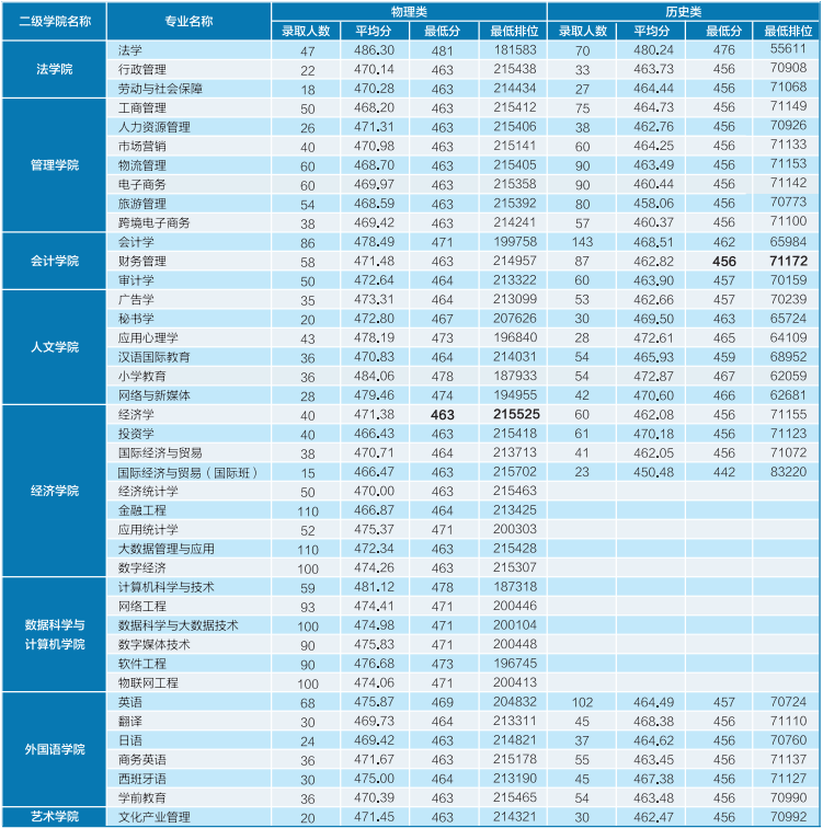 录取分数及排位(物理/历史)