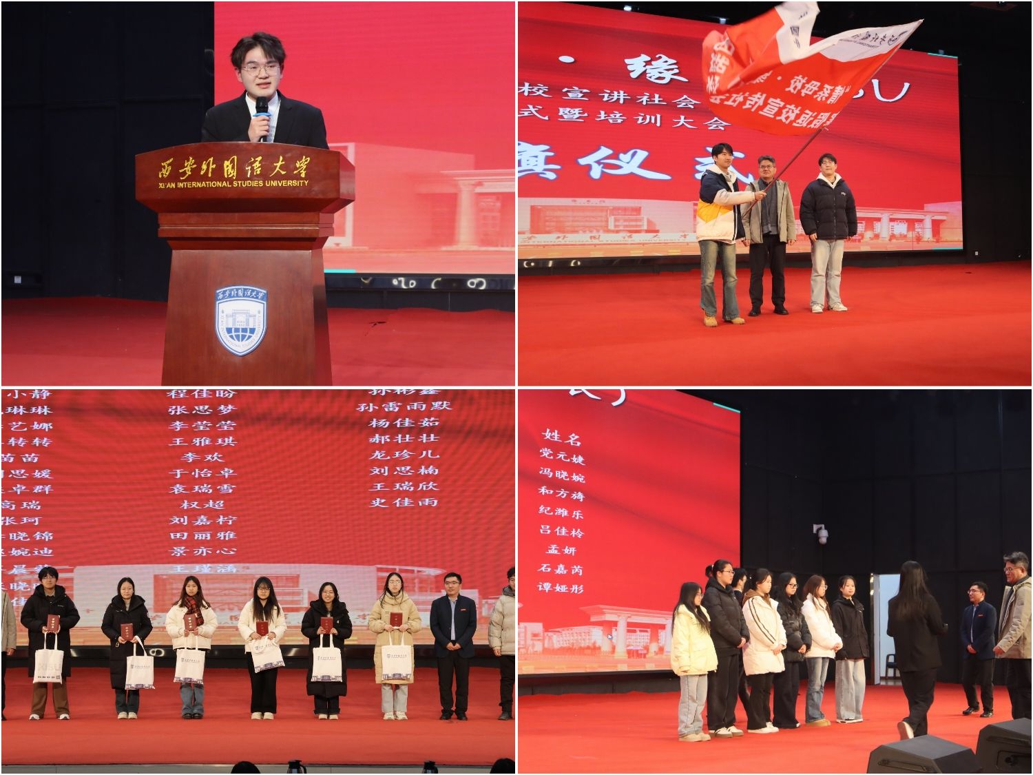 授旗环节将大会推向高潮。在校歌《放飞梦想》悠扬激昂的旋律中,毋育新为寒宣学生代表郑重授旗,寄望大家牢记使命,当好校地沟通使者,扎实推进各项寒宣工作,圆满完成本次活动任务。