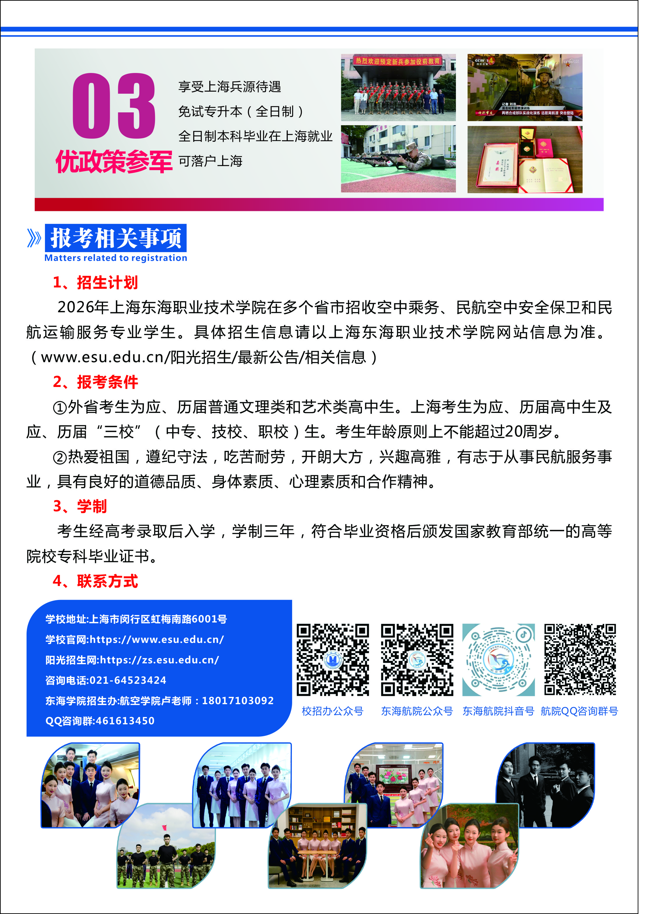 二、热爱祖国,遵纪守法,吃苦耐劳,开朗大方,兴趣高雅,有志于从事民航服务事业,具有良好的道德品质、身体素质、心理素质和合作精神。