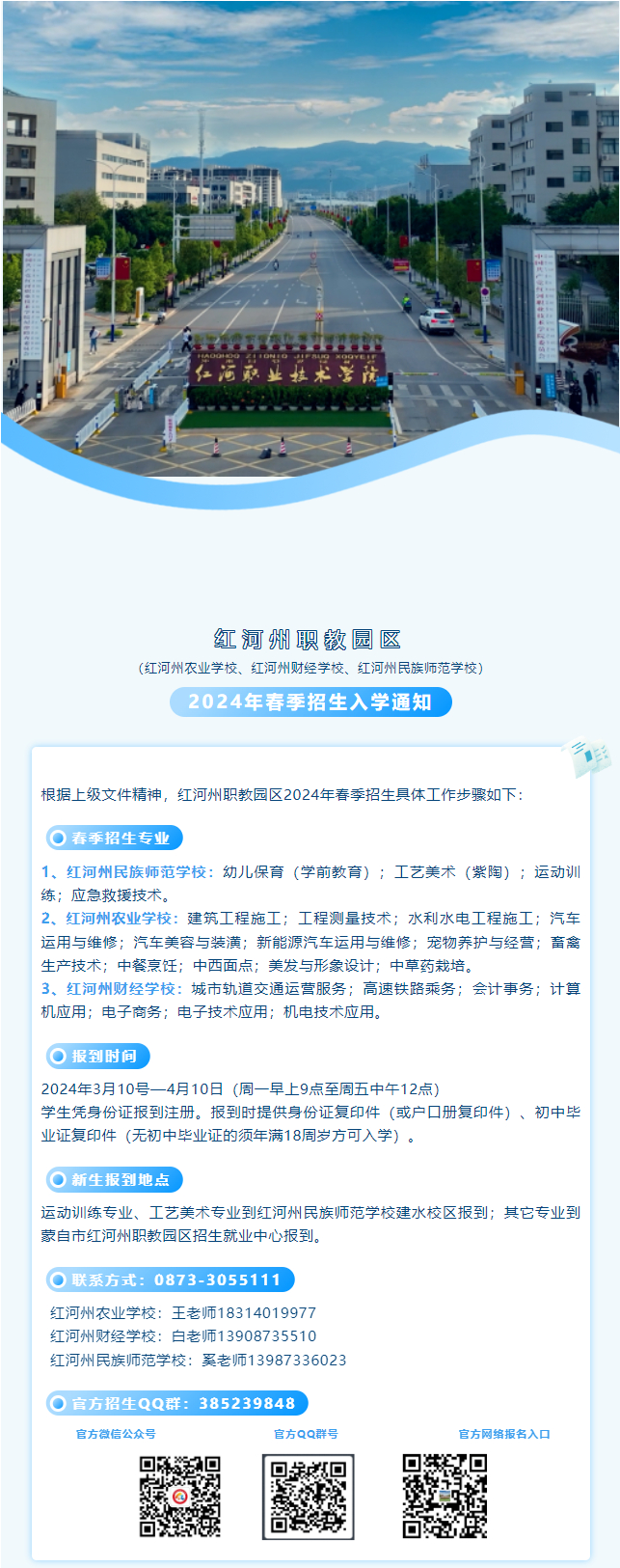 红河州职教园区2024年春季招生入学通知