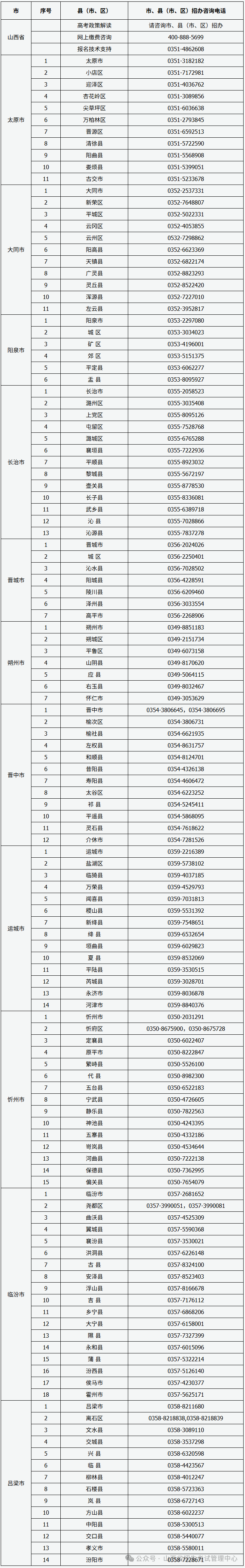山西省2026年普通高考网上报名及确认考生咨询电话