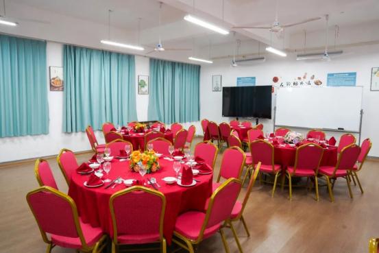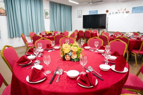 餐饮实训室:配备齐全的中餐和西餐餐具,如餐盘、餐碗、汤勺、筷子、刀叉等,以及各类酒具、茶具。配有不同规格的餐桌、餐椅,满足中餐圆桌和西餐长桌的摆台需求。还设有专业的点菜系统和收银设备,让学生熟悉现代化的餐饮服务工具。