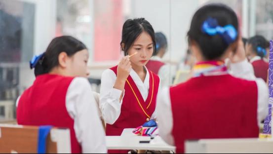 形象礼仪实训室:提供系统学习形象塑造与礼仪规范的实践平台。通过模拟真实场景,让学生在实践中掌握高铁服务所需的礼仪知识和技能,如标准站姿、坐姿、走姿、微笑服务、引导手势等,提升学生的职业素养和服务能力,并进行职业妆容设计培训、服装搭配训练。