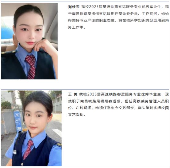 高速铁路客运服务专业已与南昌铁路局福州客运段、重庆城市轨道交通运营有限公司、上海城市轨道交通运营有限公司、江西南铁商务旅行服务有限公司等行业企业共建订单班,企业将深度参与订单班人才培养全过程,通过提供真实项目实践、配备企业导师、开通优先就业通道等方式,全方位支持学生成长,真正实现“入校即入企、毕业即就业”的培养闭环。