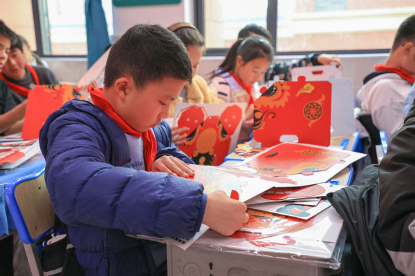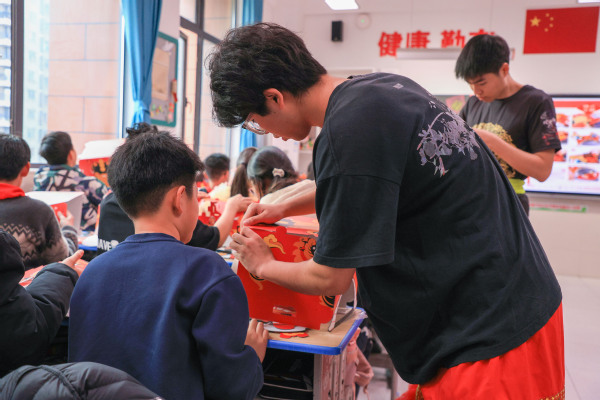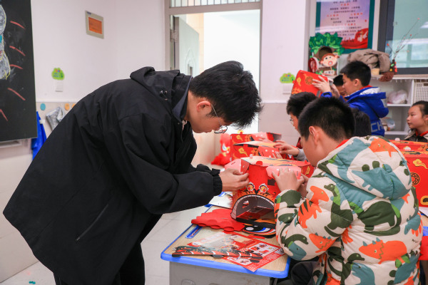 手工制作环节则成为孩子们亲近非遗、动手创造的乐园。在老师和大学生们手把手的指导下,孩子们认真裁剪、拼贴、装饰,将平面材料变成立体灵动的狮头作品。“看,我做的醒狮头成功了!”学生孔祥麟高举自己的作品,眼中满是自豪。指尖流转之间,非遗不再是书本上的概念,而成为了可触摸、可创造的文化印记。