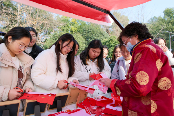 现场欢声笑语不断,不少学生边做边拍照打卡,在体验中深度感受非遗技艺的精妙。洪山区青菱街道黄家湖社区党总支书记马丽君表示:“我们希望用零门槛、全免费的方式,让大学生在考试季放松身心,同时近距离接触传统文化,增强文化认同。”